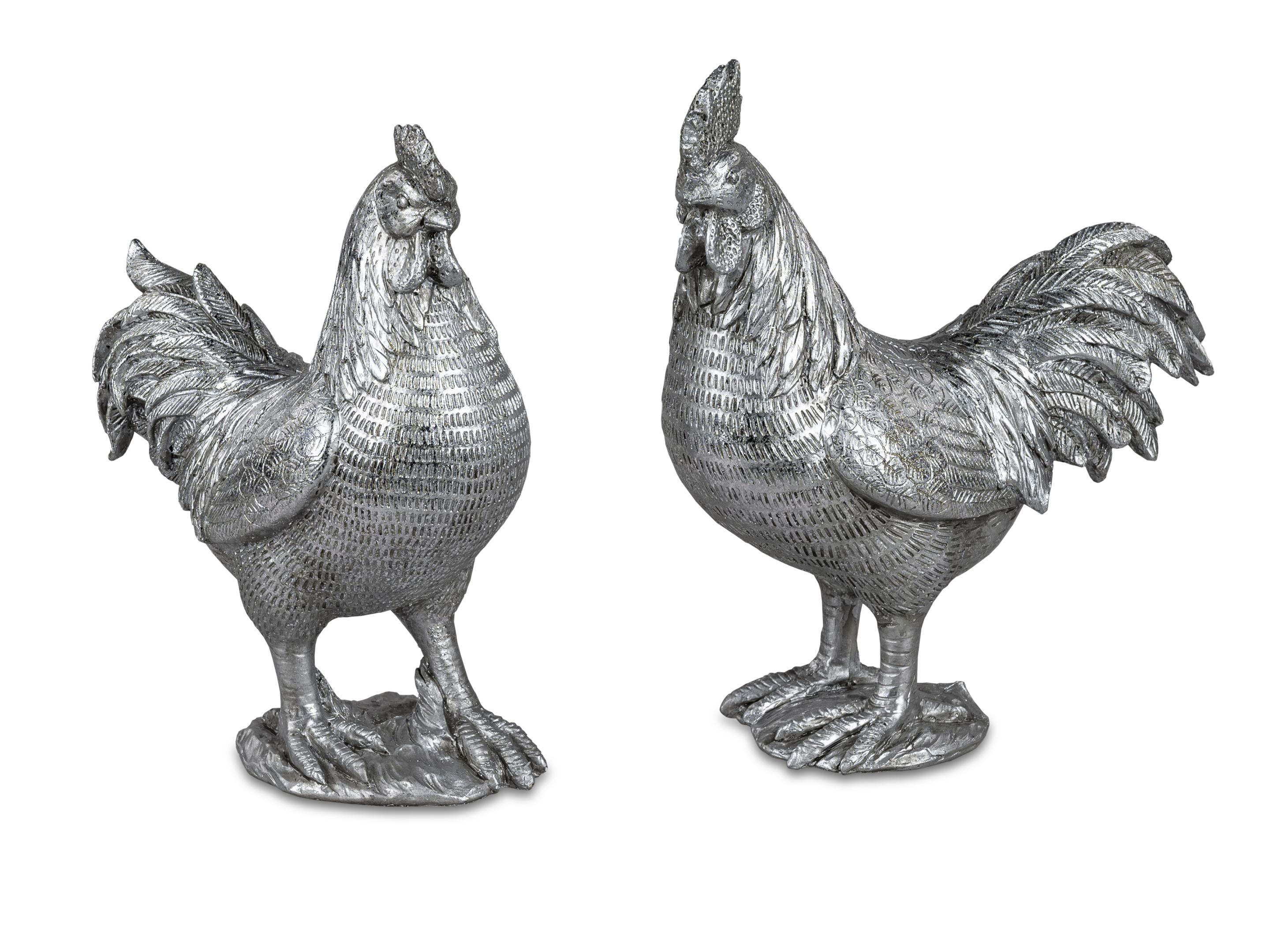Tier Figuren Hahn und Henne 26cm Festival-Silber- Dekoration für Ostern