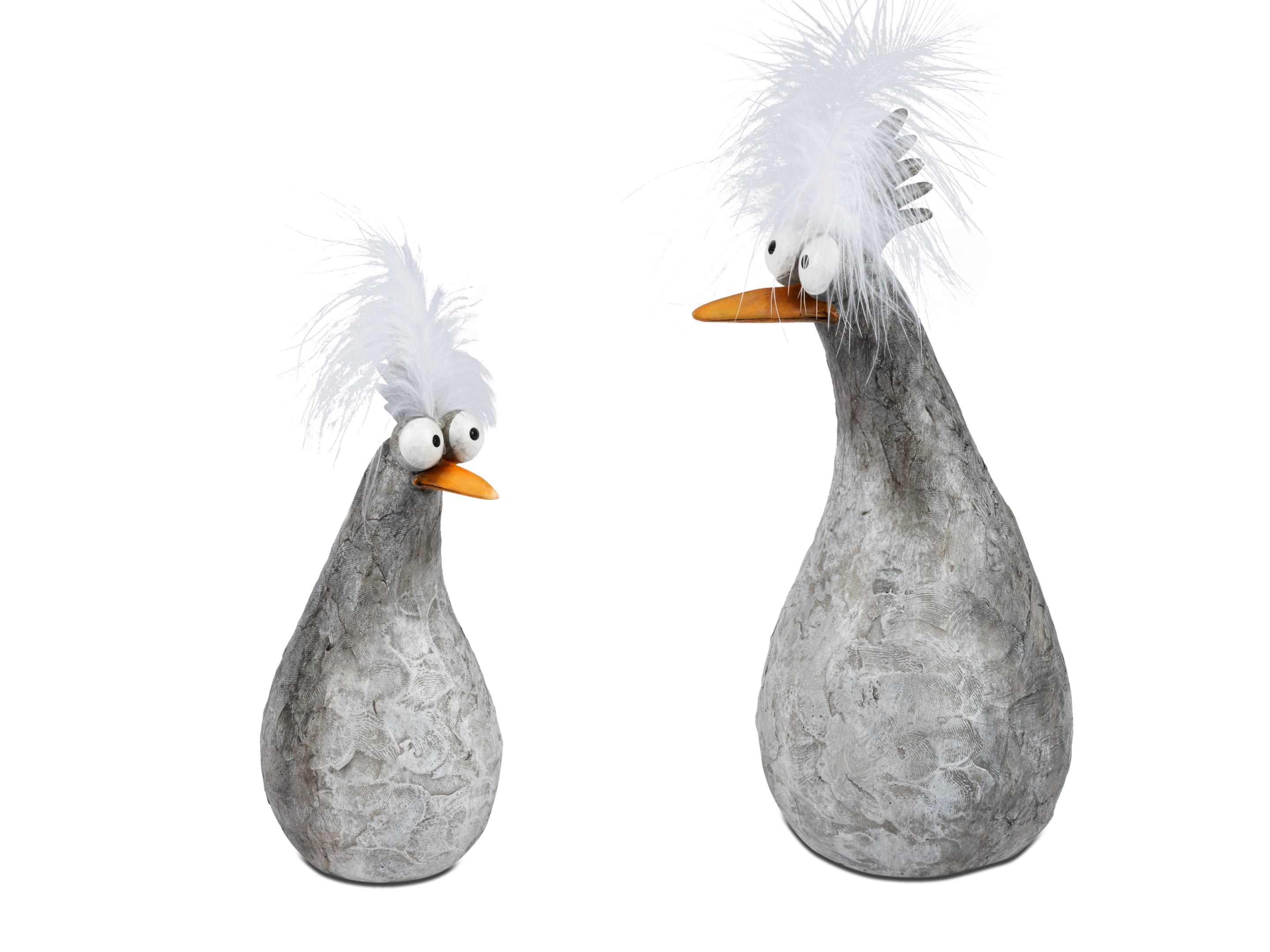 1 Set mit 2 Stück Figur Vogel Rudi 17 und 21cm mit Federn, Dekoration Ostern, Frühling