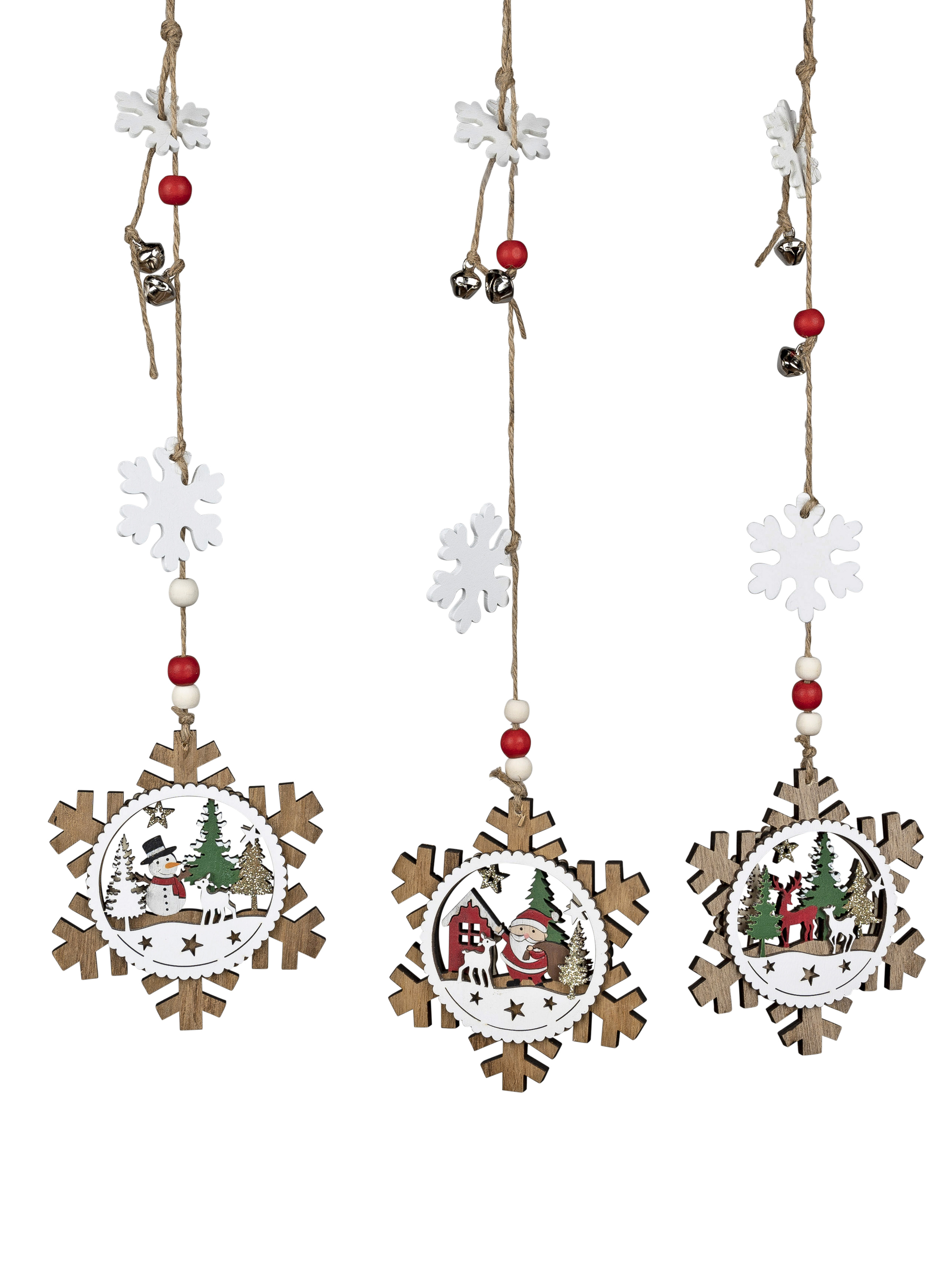1 Stueck von 3 formano Fensterhaenger Holz Schneeflocken 40cm lang Optik Dekohaenger Fensterdeko
