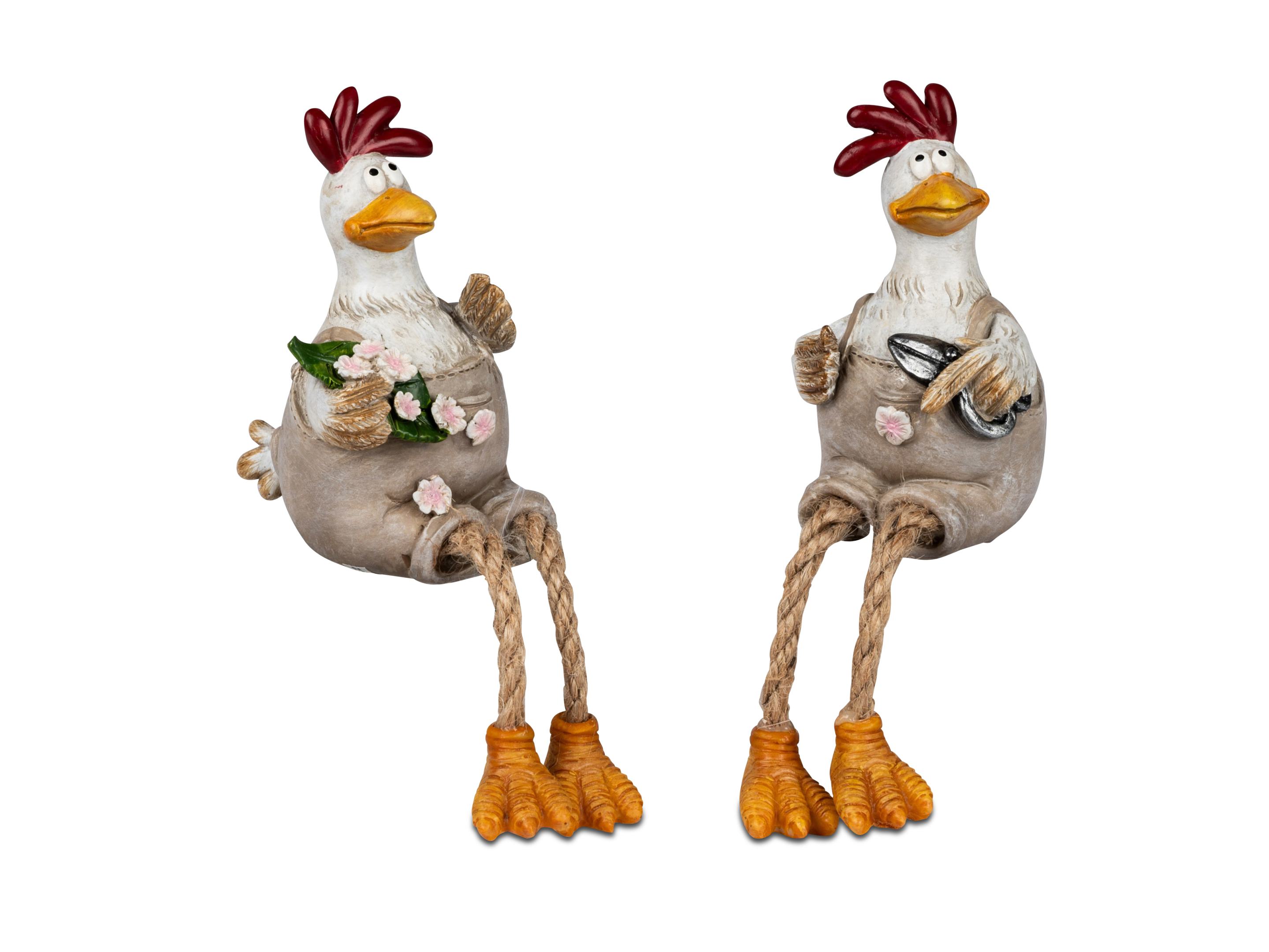 2 Stück Set- Deko Huhn Berta Figur mit Seil-Beinen
