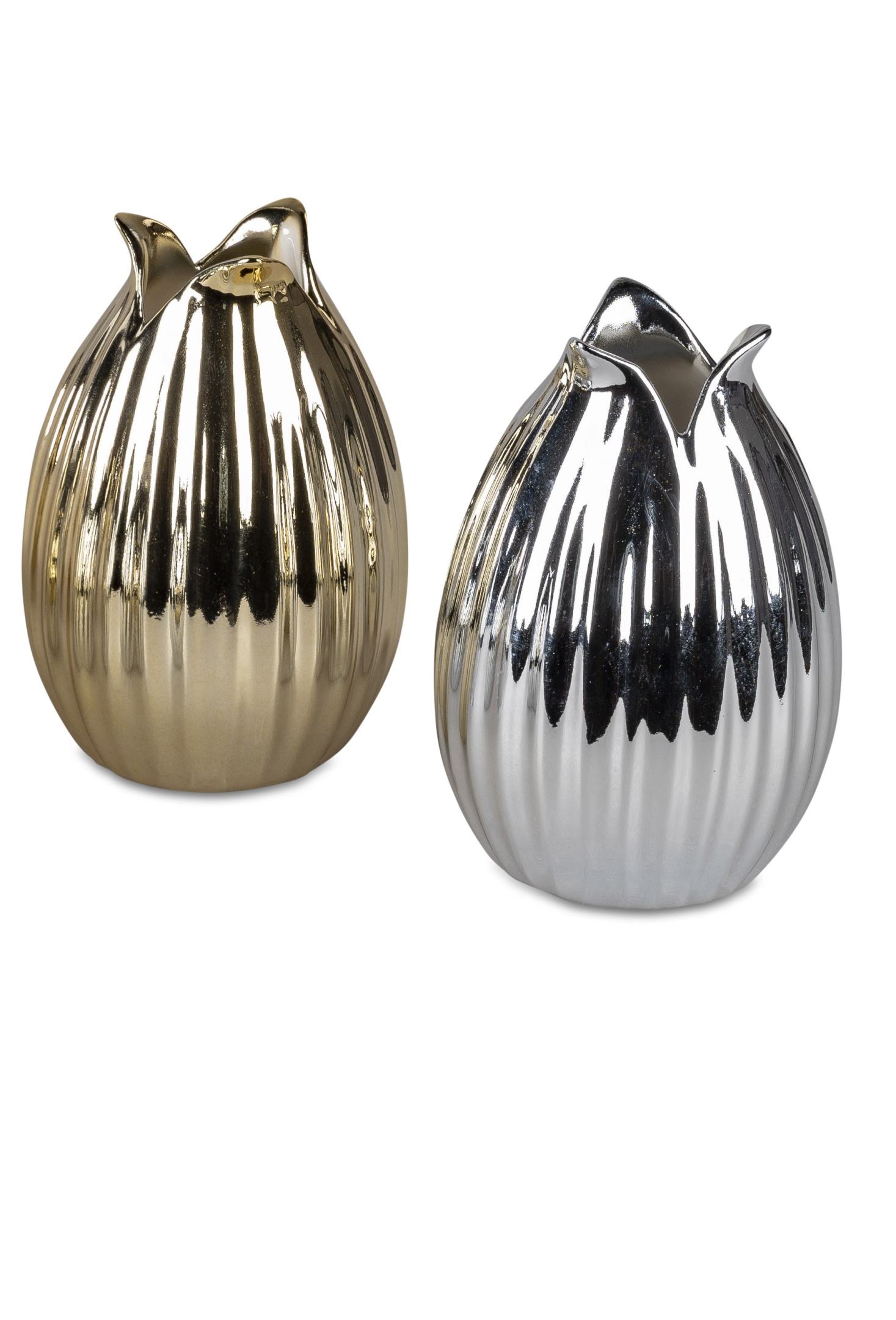 Blumenvase Festival Dekovase Vase aus Keramik 13cm hoch in goldfarben oder silberfarben