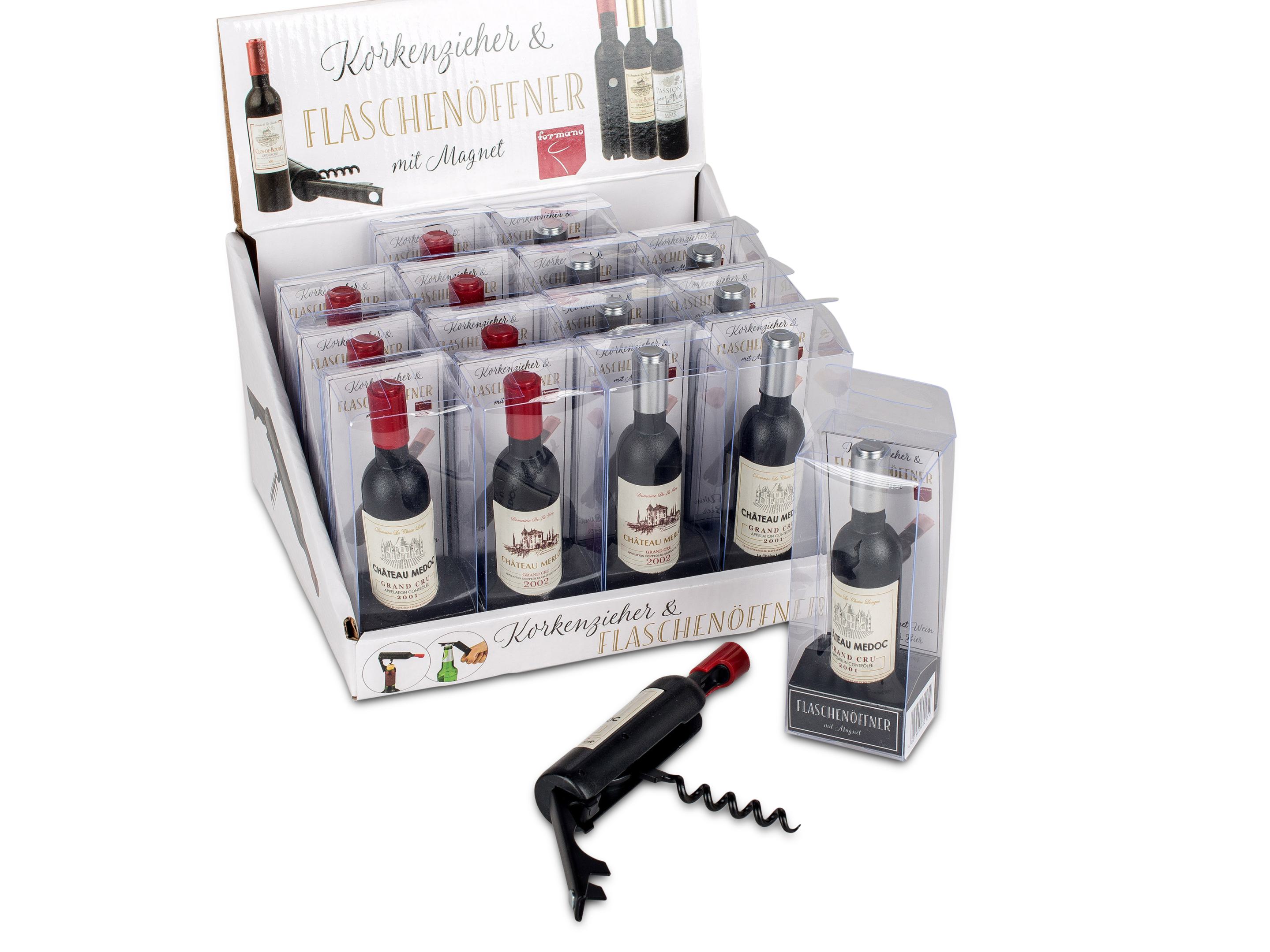 Flaschenöffner&Korkenzieher 2 in 1 mit Magnet als Weinflasche sortiert,ca. 12 cm