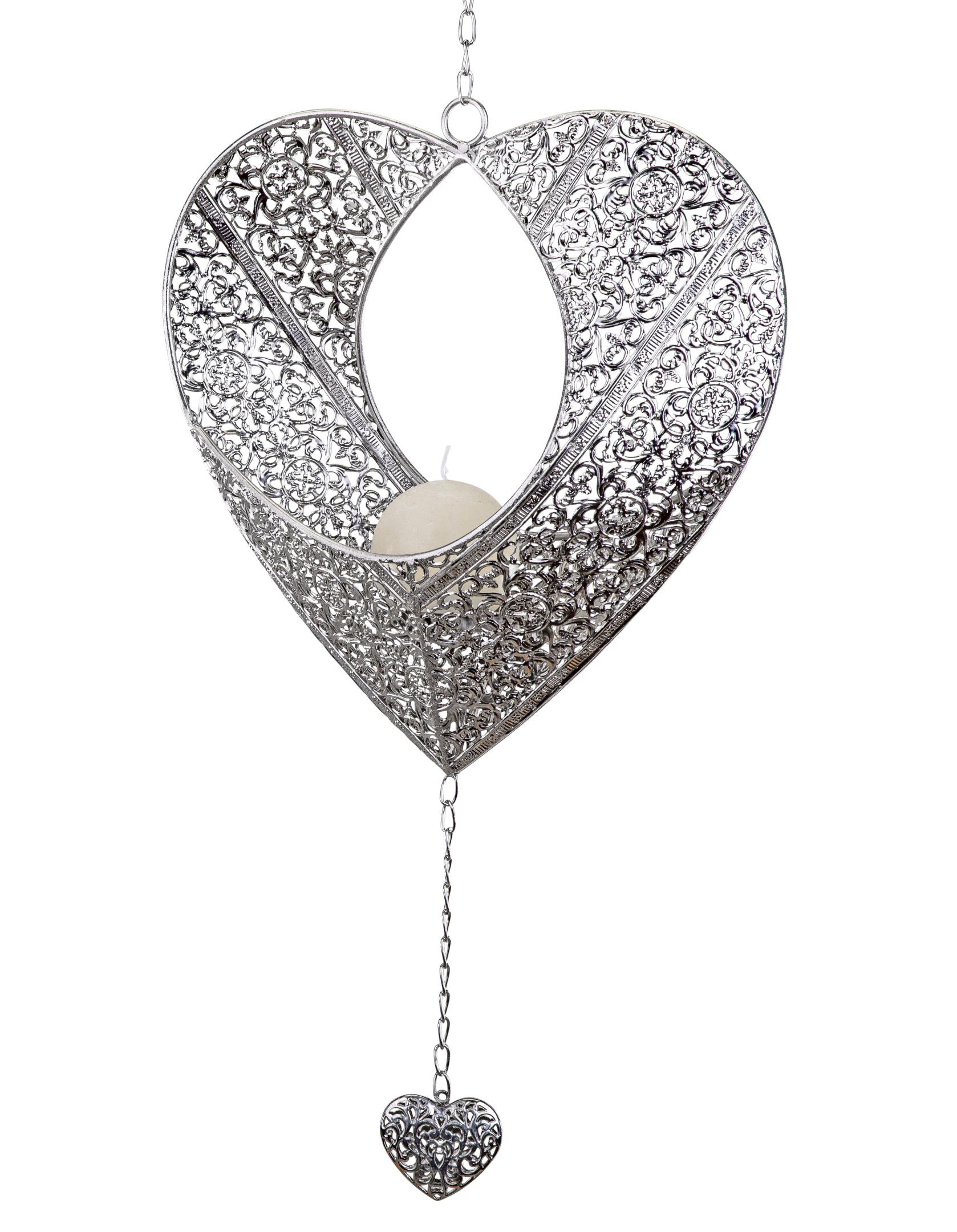 formano Deko Windlicht Hänger Teelicht Girlande Herz 22 cm Silber Metall