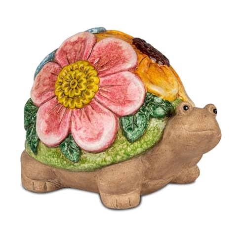 Gartenfigur Schildkröte Dekofigur 18 cm Blumen-Relief