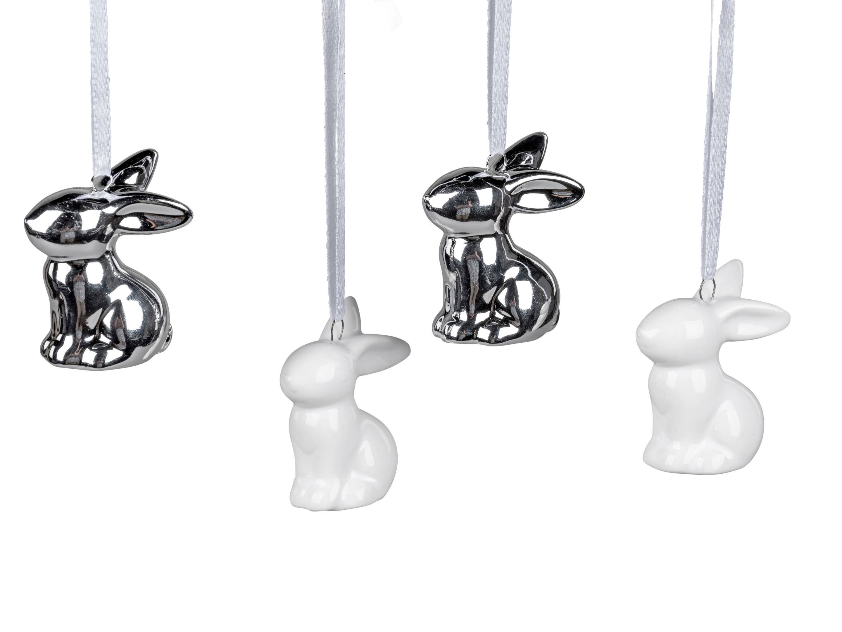 Geschenke und Dekoration zu Ostern- 1 Stück lustiger Mini Hase 5cm weiss oder silber zum Anhängen für den Osterstrauß Osterhase