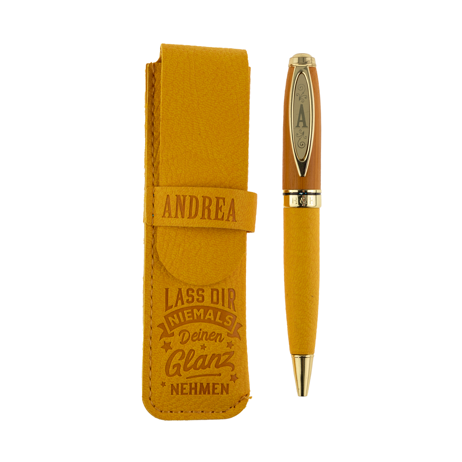 Bamboo Persönlicher Kuli Kugelschreiber Stift mit Namen o. Spruch Personalisiertes Etui Monogramm-Design persönliches Geschenk (Kuli Andrea )