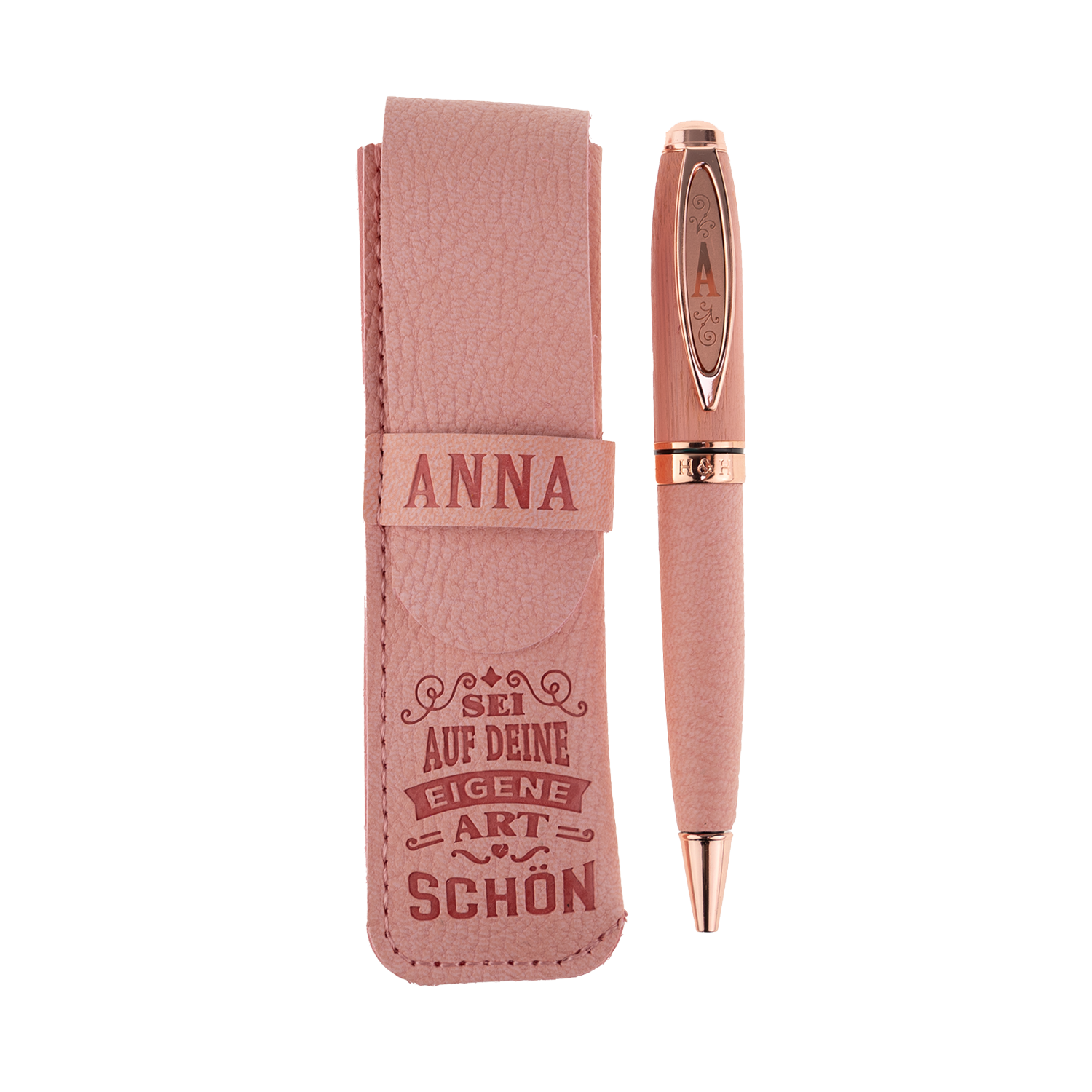 Bamboo Persönlicher Kuli Kugelschreiber Stift mit Namen o. Spruch Personalisiertes Etui Monogramm-Design persönliches Geschenk (Kuli Anna )