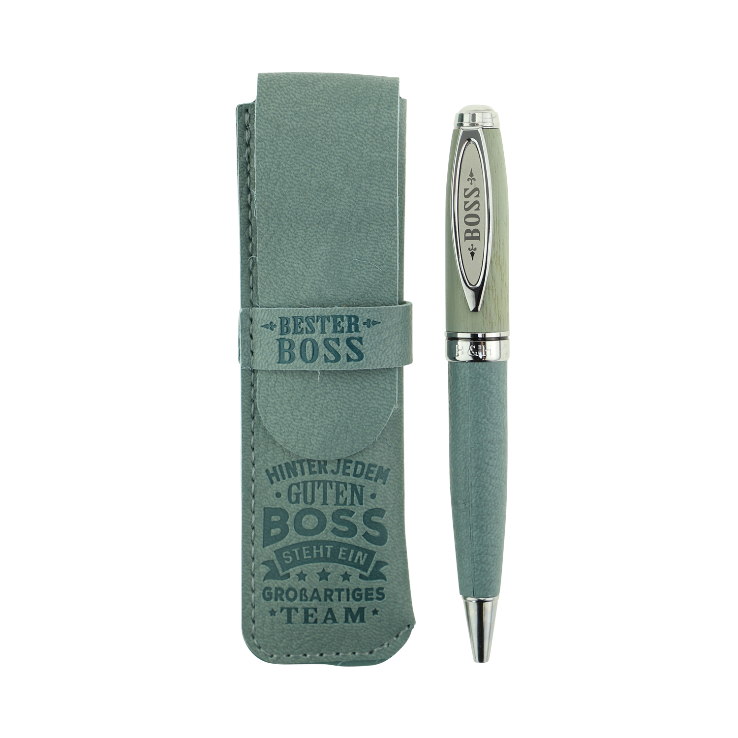 Bamboo Persönlicher Kuli Kugelschreiber Stift mit Namen o. Spruch Personalisiertes Etui Monogramm-Design persönliches Geschenk (Kuli Boss)