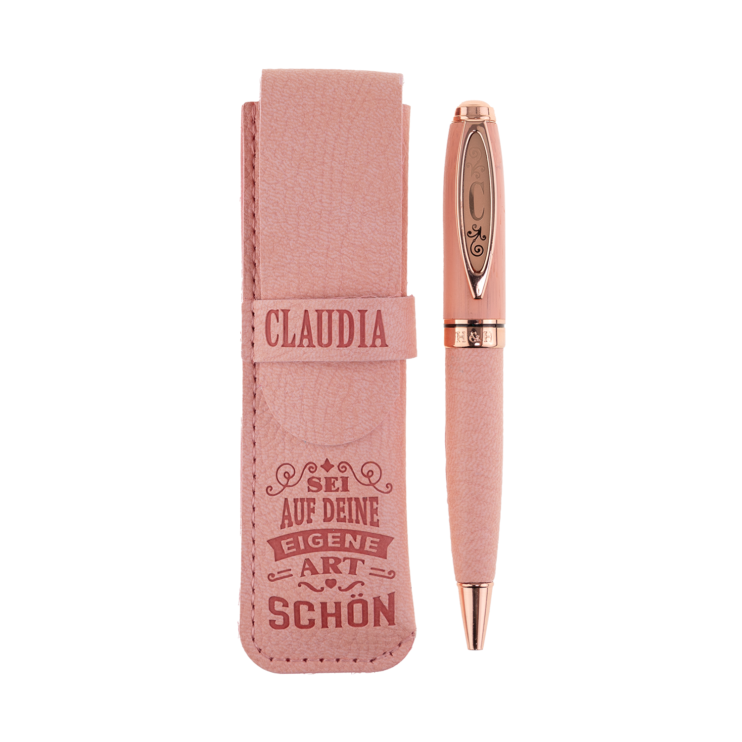Bamboo Persönlicher Kuli Kugelschreiber Stift mit Namen o. Spruch Personalisiertes Etui Monogramm-Design persönliches Geschenk (Kuli Claudia )