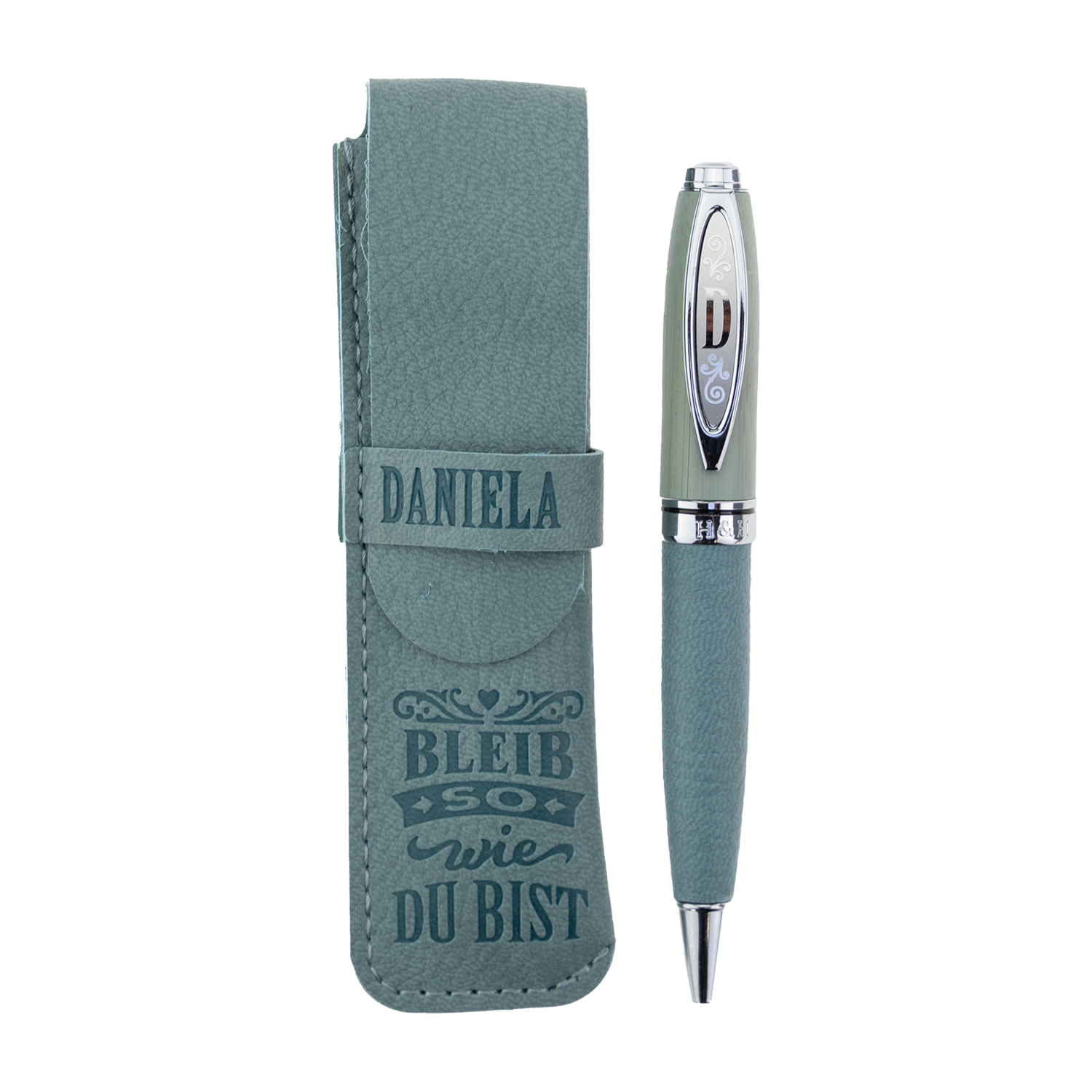 Bamboo Persönlicher Kuli Kugelschreiber Stift mit Namen o. Spruch Personalisiertes Etui Monogramm-Design persönliches Geschenk (Kuli Daniela )