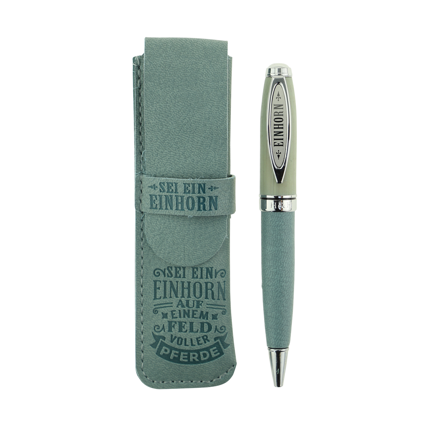 Bamboo Persönlicher Kuli Kugelschreiber Stift mit Namen o. Spruch Personalisiertes Etui Monogramm-Design persönliches Geschenk (Kuli Einhorn)
