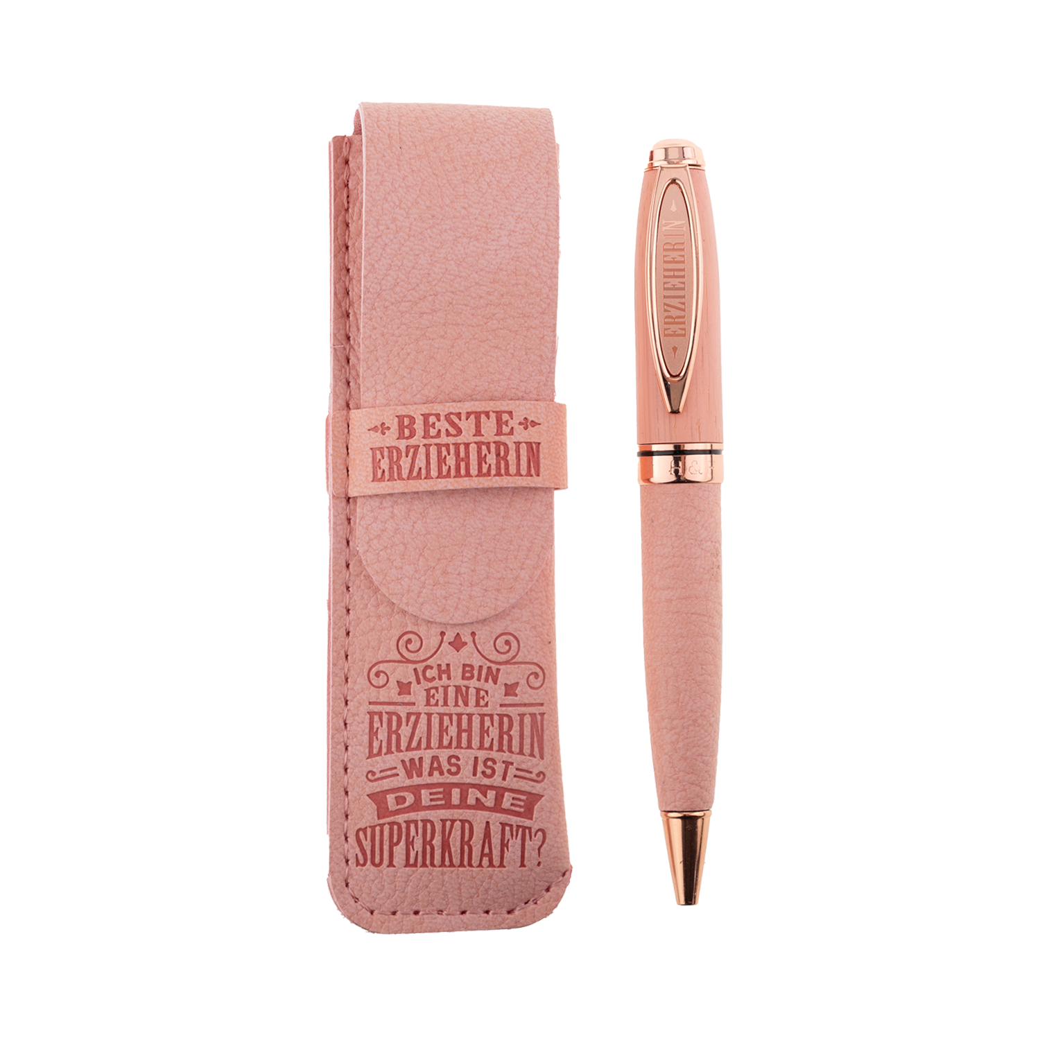 Bamboo Persönlicher Kuli Kugelschreiber Stift mit Namen o. Spruch Personalisiertes Etui Monogramm-Design persönliches Geschenk (Kuli Erzieherin)