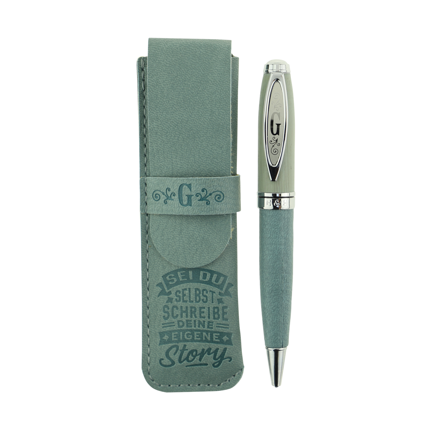 Bamboo Persönlicher Kuli Kugelschreiber Stift mit Namen o. Spruch Personalisiertes Etui Monogramm-Design persönliches Geschenk (Kuli G)