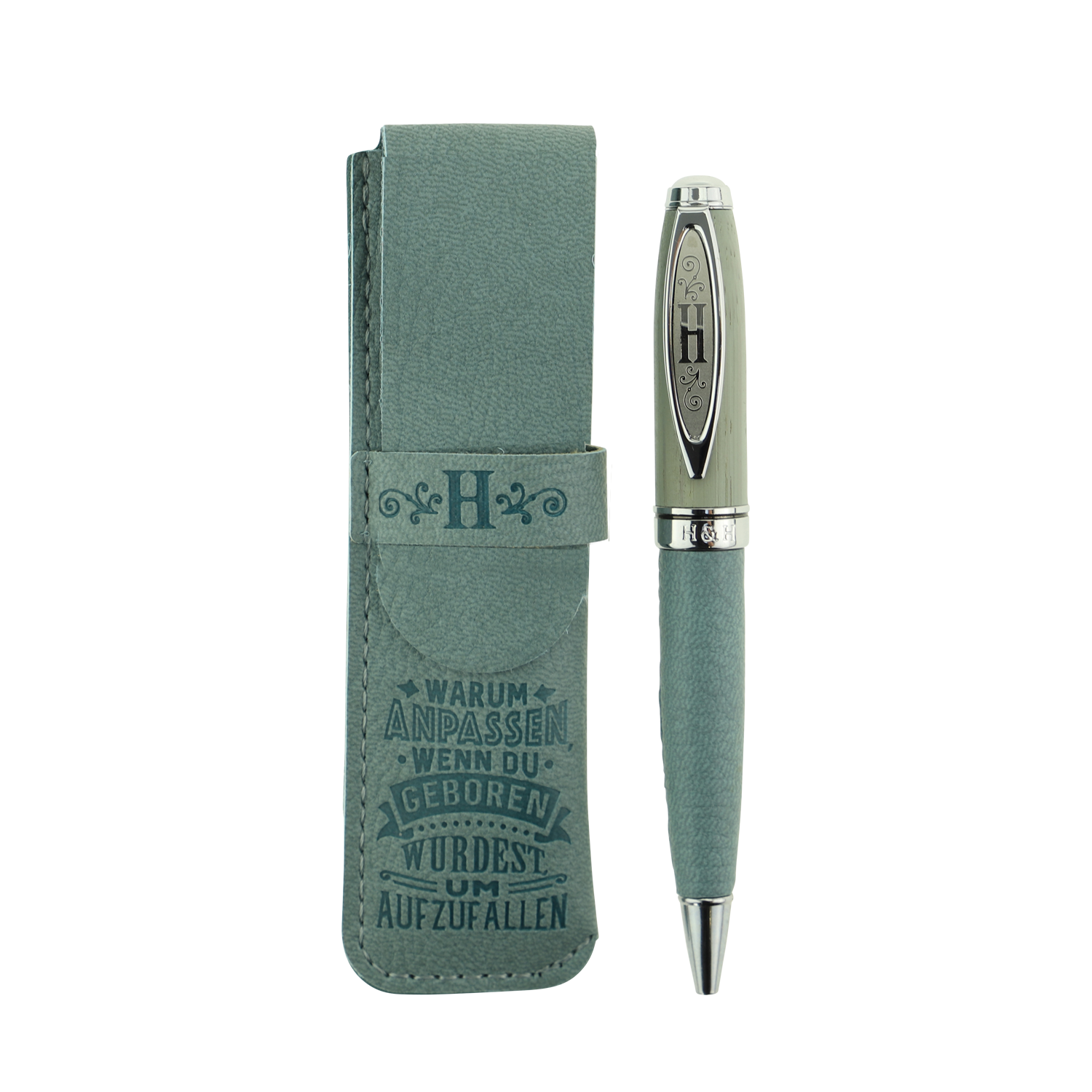 Bamboo Persönlicher Kuli Kugelschreiber Stift mit Namen o. Spruch Personalisiertes Etui Monogramm-Design persönliches Geschenk (Kuli H)