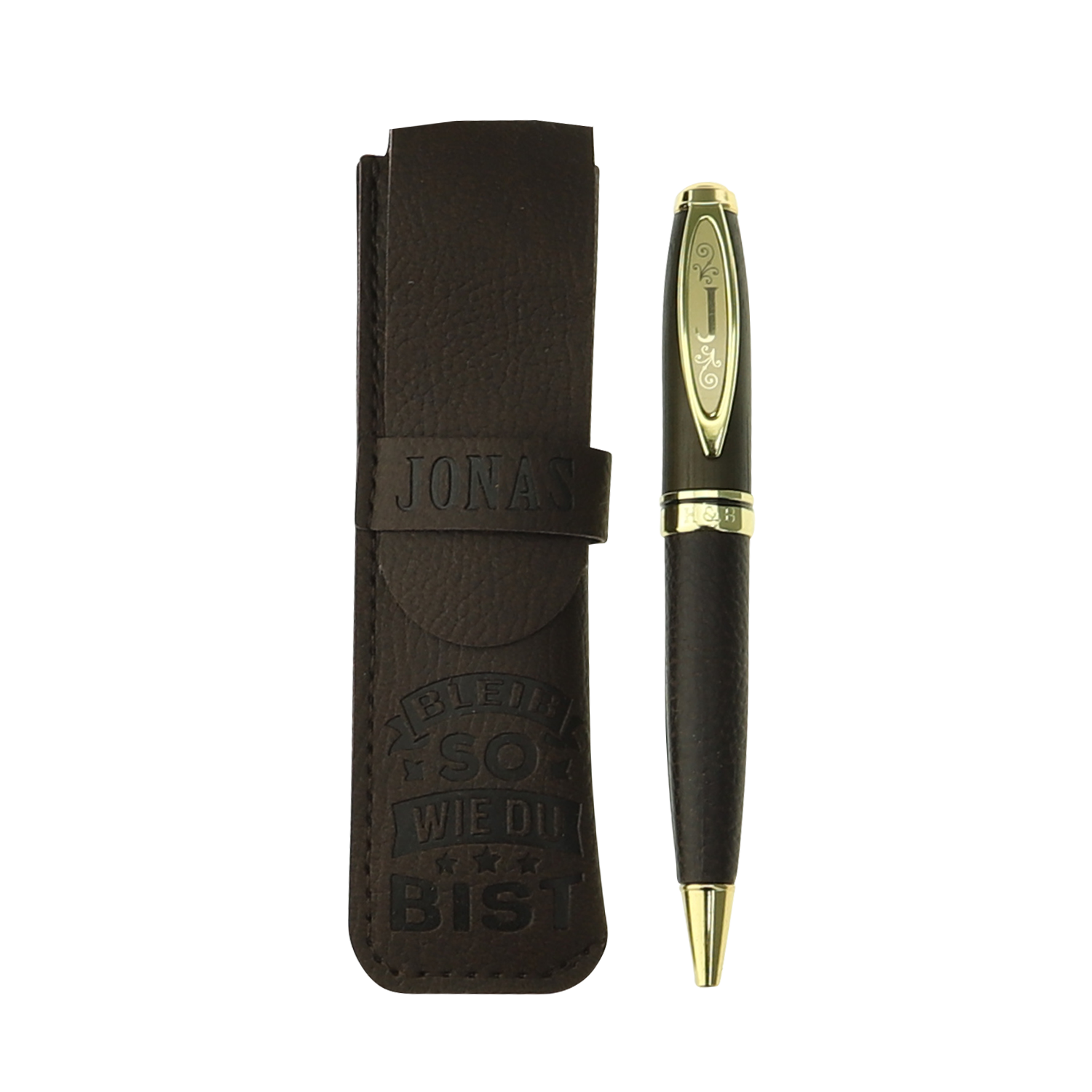 Bamboo Persönlicher Kuli Kugelschreiber Stift mit Namen o. Spruch Personalisiertes Etui Monogramm-Design persönliches Geschenk (Kuli Jonas )