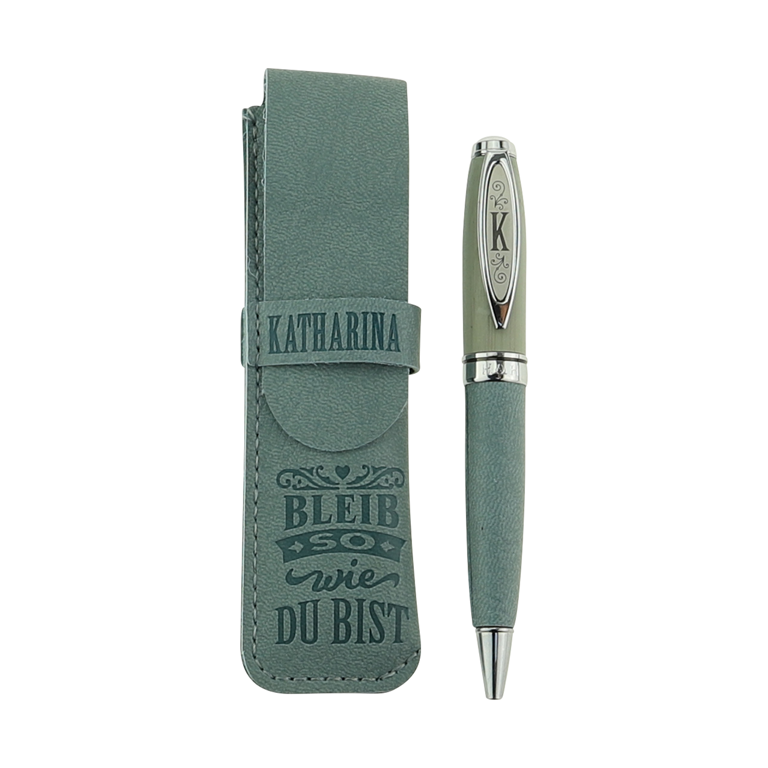 Bamboo Persönlicher Kuli Kugelschreiber Stift mit Namen o. Spruch Personalisiertes Etui Monogramm-Design persönliches Geschenk (Kuli Katharina )
