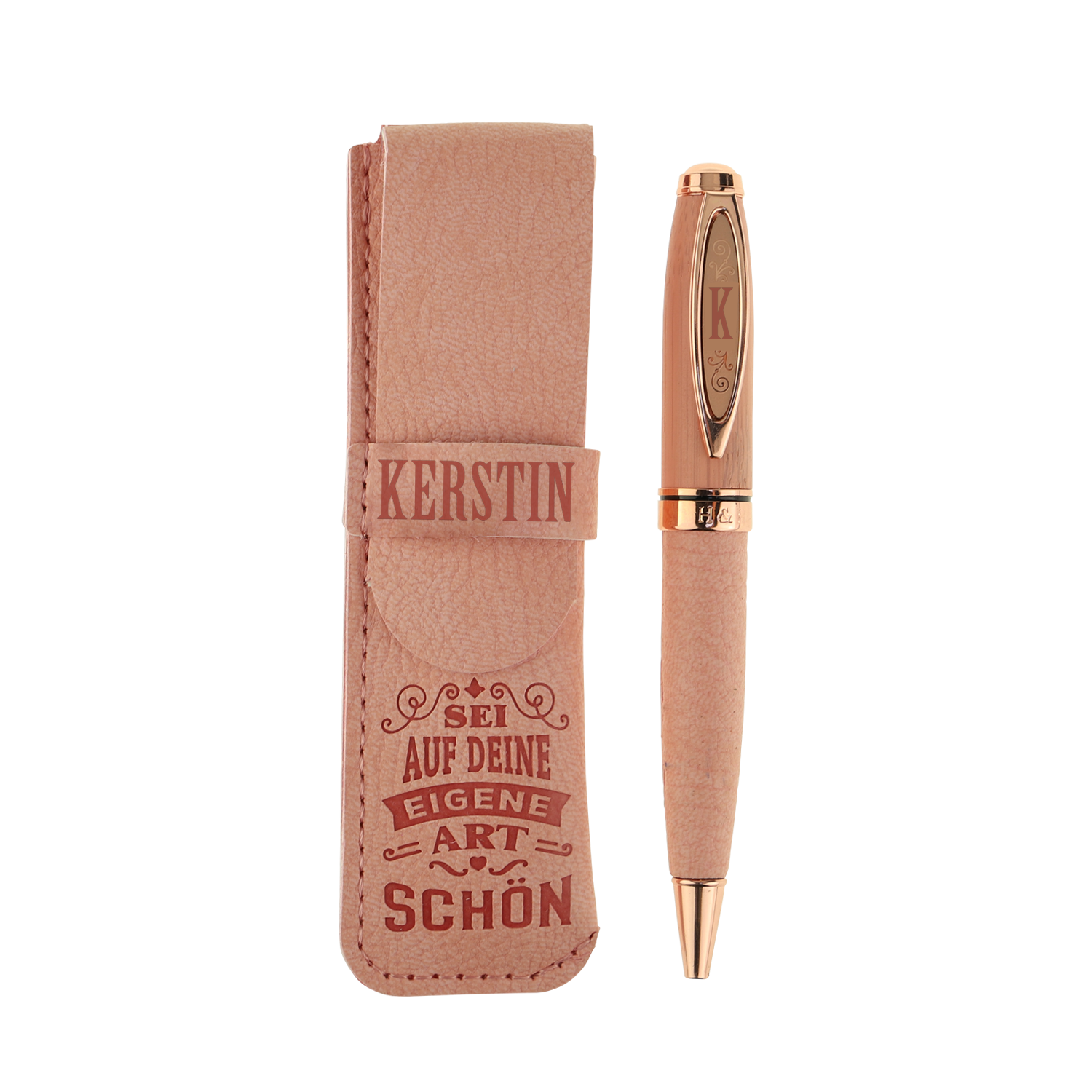 Bamboo Persönlicher Kuli Kugelschreiber Stift mit Namen o. Spruch Personalisiertes Etui Monogramm-Design persönliches Geschenk (Kuli Kerstin )