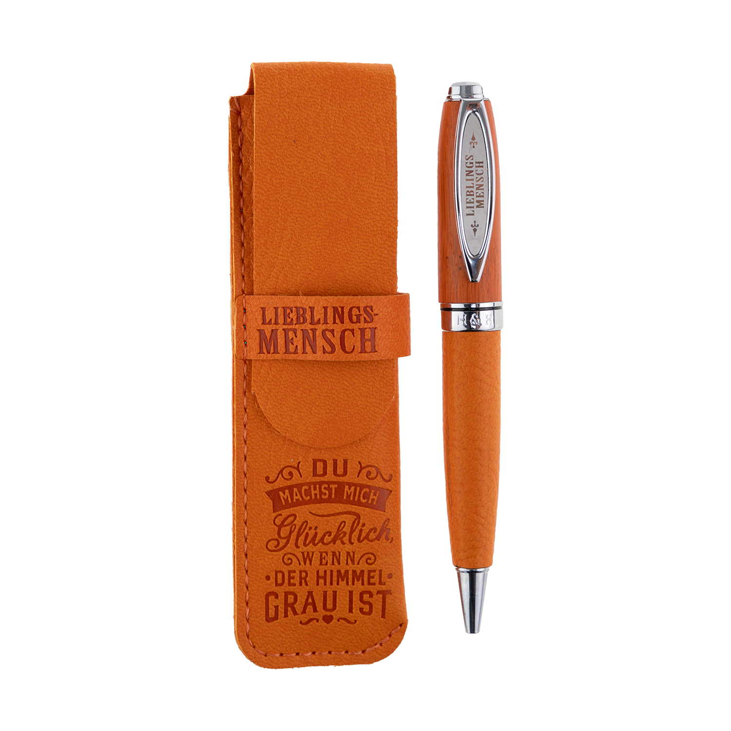 Bamboo Persönlicher Kuli Kugelschreiber Stift mit Namen o. Spruch Personalisiertes Etui Monogramm-Design persönliches Geschenk (Kuli Lieblingsmensch)