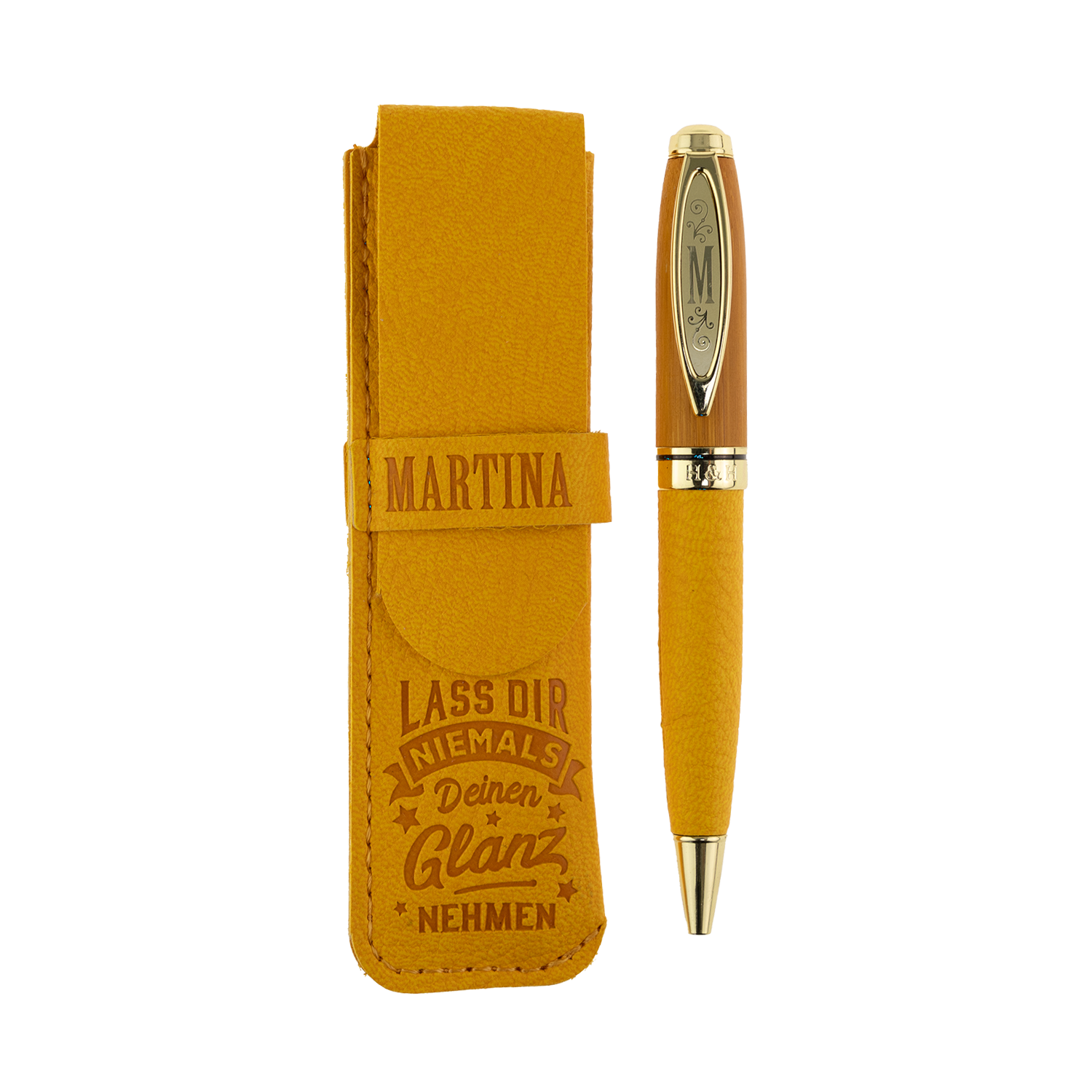 Bamboo Persönlicher Kuli Kugelschreiber Stift mit Namen o. Spruch Personalisiertes Etui Monogramm-Design persönliches Geschenk (Kuli Martina )