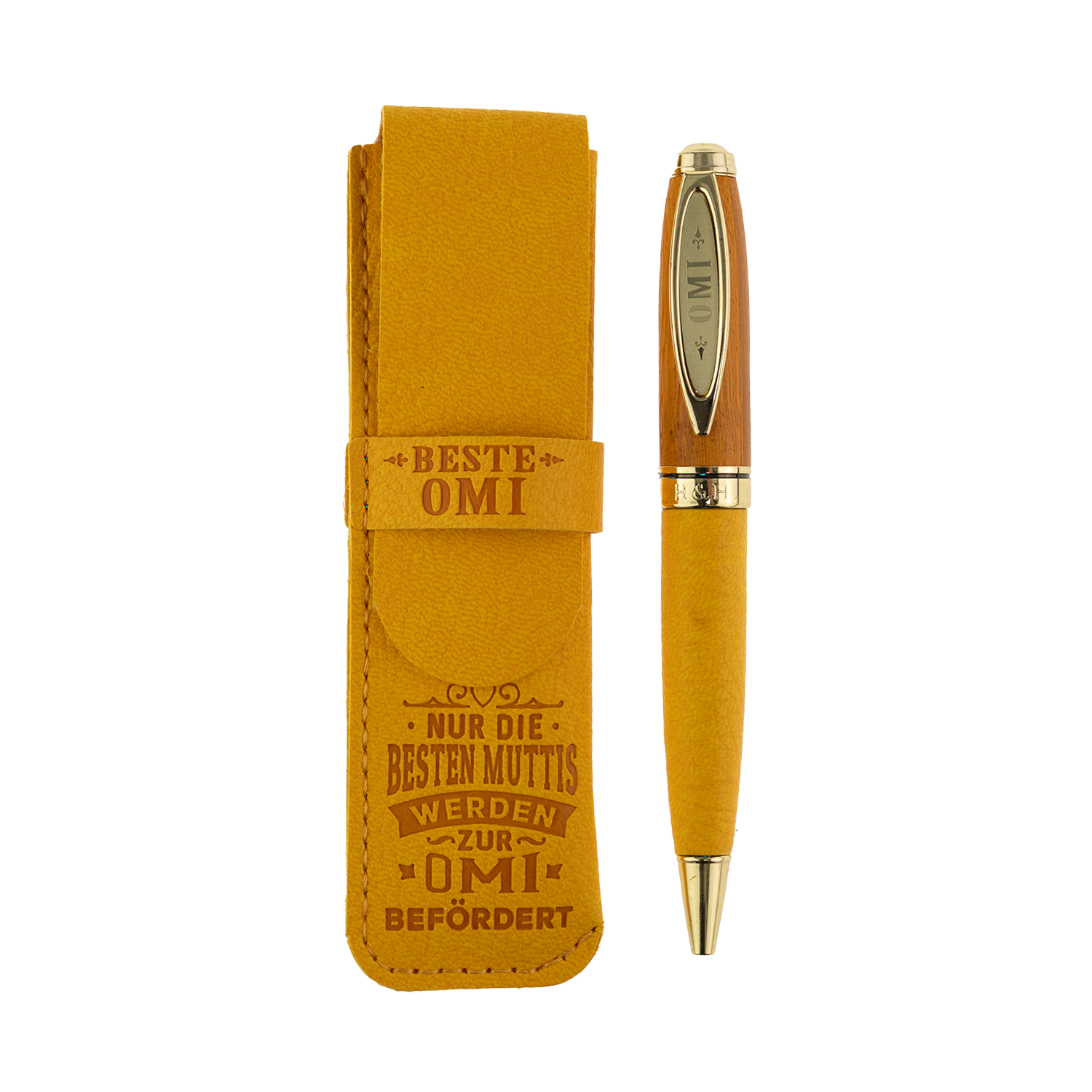 Bamboo Persönlicher Kuli Kugelschreiber Stift mit Namen o. Spruch Personalisiertes Etui Monogramm-Design persönliches Geschenk (Kuli Omi)