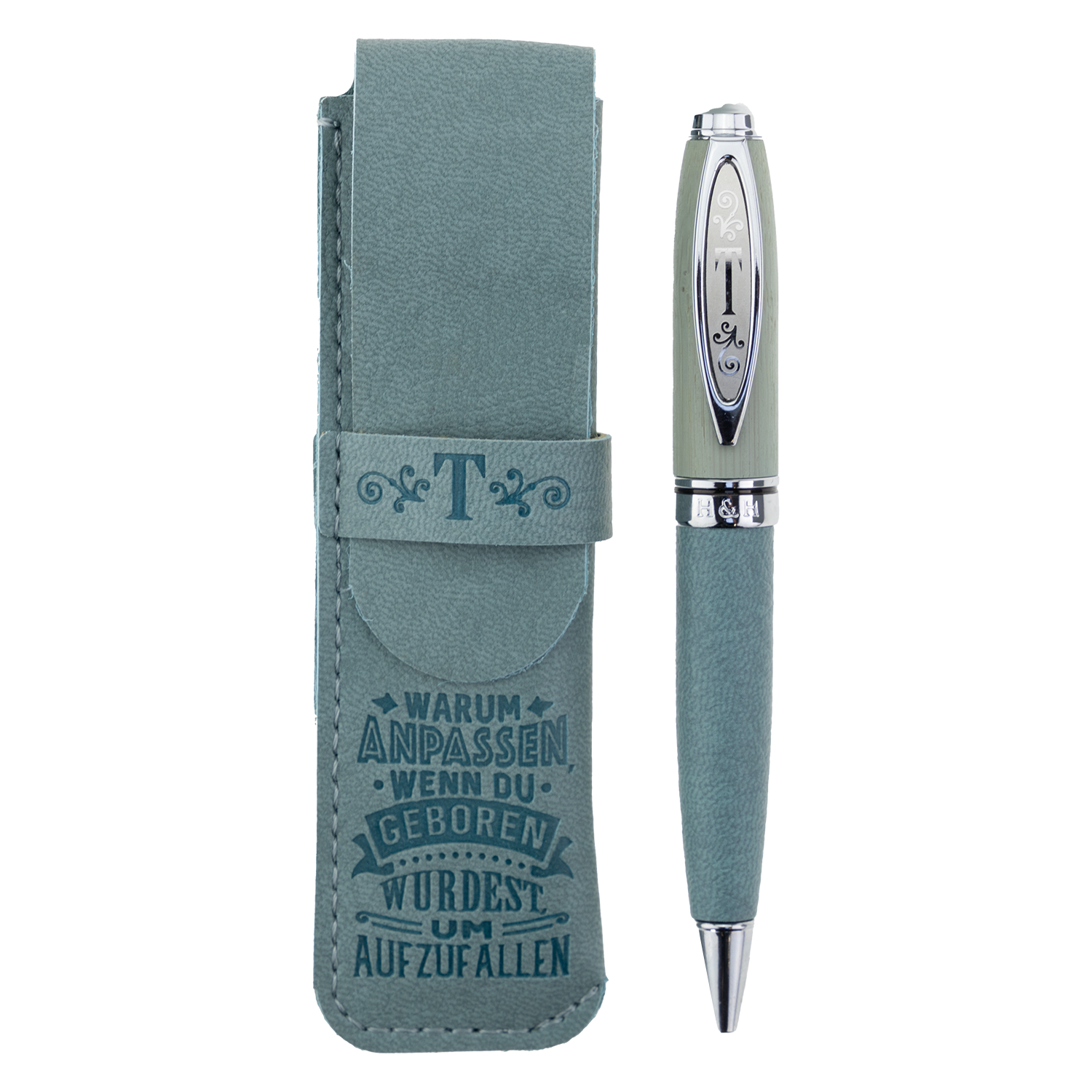 Bamboo Persönlicher Kuli Kugelschreiber Stift mit Namen o. Spruch Personalisiertes Etui Monogramm-Design persönliches Geschenk (Kuli T)