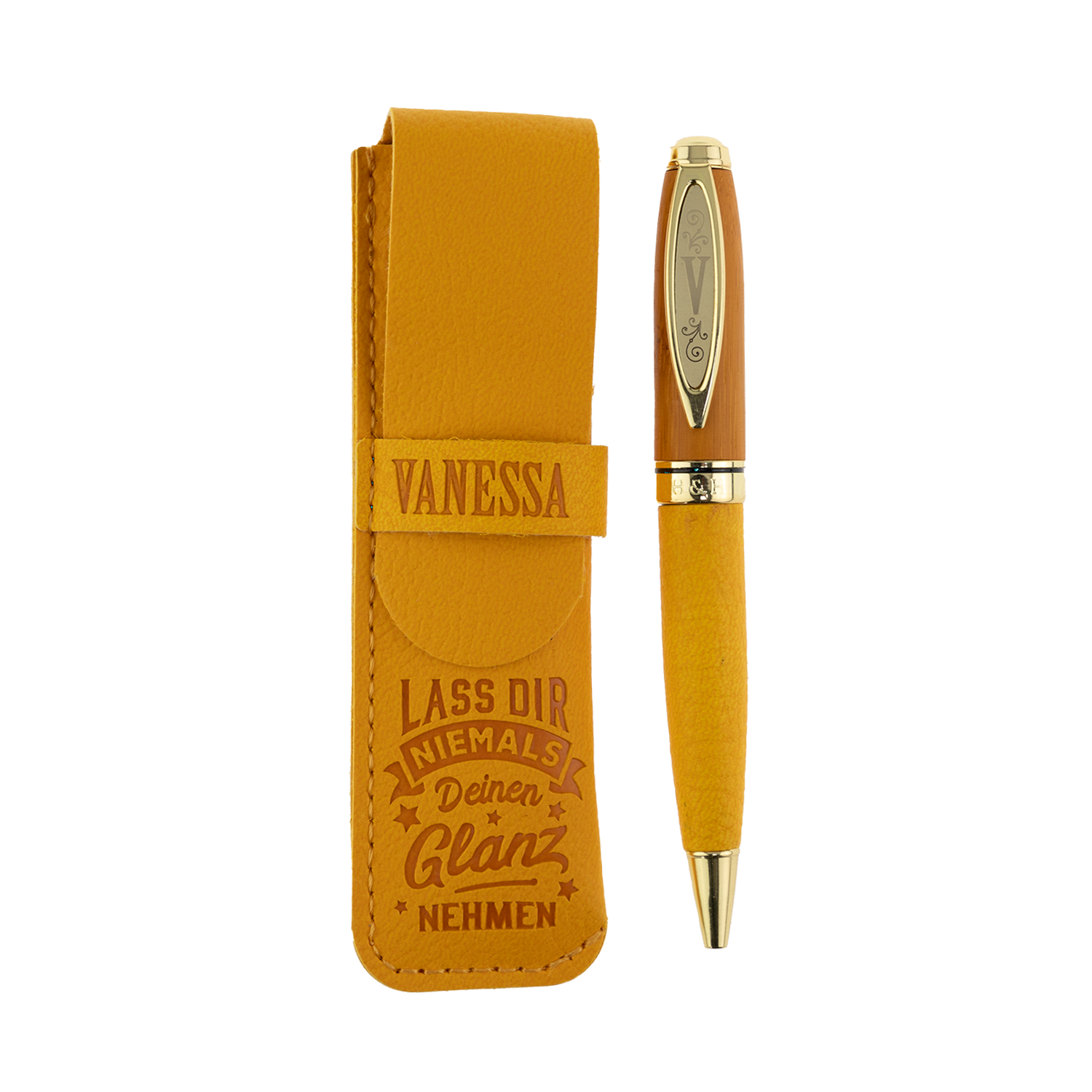 Bamboo Persönlicher Kuli Kugelschreiber Stift mit Namen o. Spruch Personalisiertes Etui Monogramm-Design persönliches Geschenk (Kuli Vanessa )