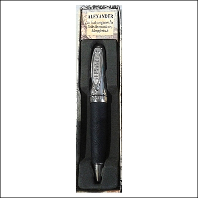 Praktisch und zugleich ansprechend - unsere neue Serie personalisierter Kugelschreiber und Notizbücher (ArtikelNr. 03192010) ̶ das perfekte Geschenk für Familie und Freunde. Bestimmend für das Design ist der praktische Nutzen, deshalb gibt es eine Version für die Herren. Die Version für ihn ist etwas handfest, der Überzug aus Kunstlederoptik sorgt für den perfekten Grip und die Hardcover der Notizbücher sind im passenden Design gehaltenKugelschreiber ca 10 cm lang, dunkelblau/silberfarben.Der Preis gilt für einen Kugelschreiber.