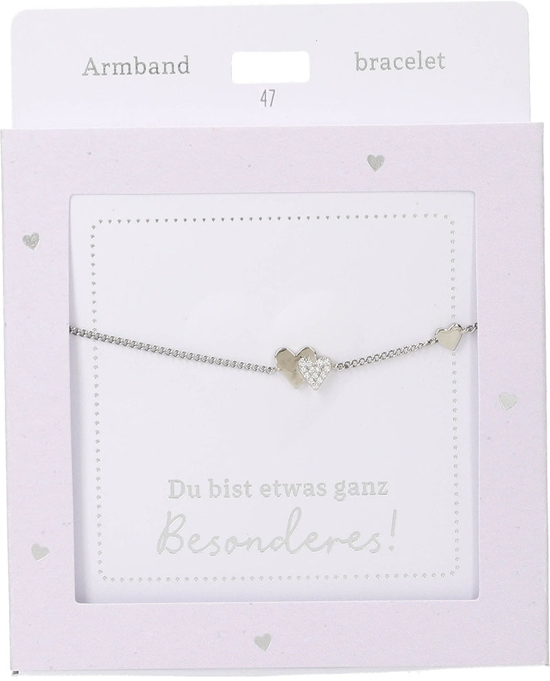 Damen Edelstahl Armband mit Herz-Anhänger, Silberfarbend oder Goldfarbend, 15-20cm Verstellbar-2 Herzen Silber