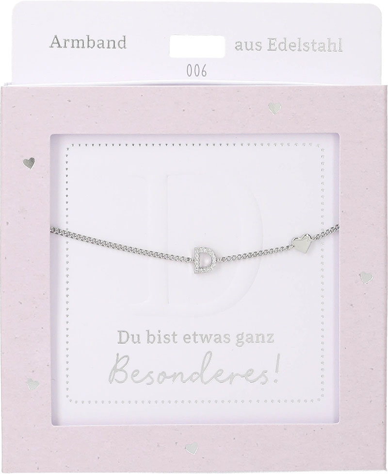 Damen Edelstahl Armband mit Herz-Anhänger, Silberfarbend oder Goldfarbend, 15-20cm Verstellbar-D Silber