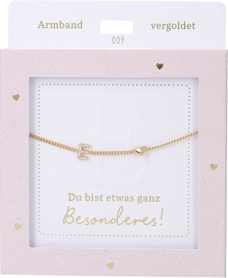 Damen Edelstahl Armband mit Herz-Anhänger, Silberfarbend oder Goldfarbend, 15-20cm Verstellbar-E Gold