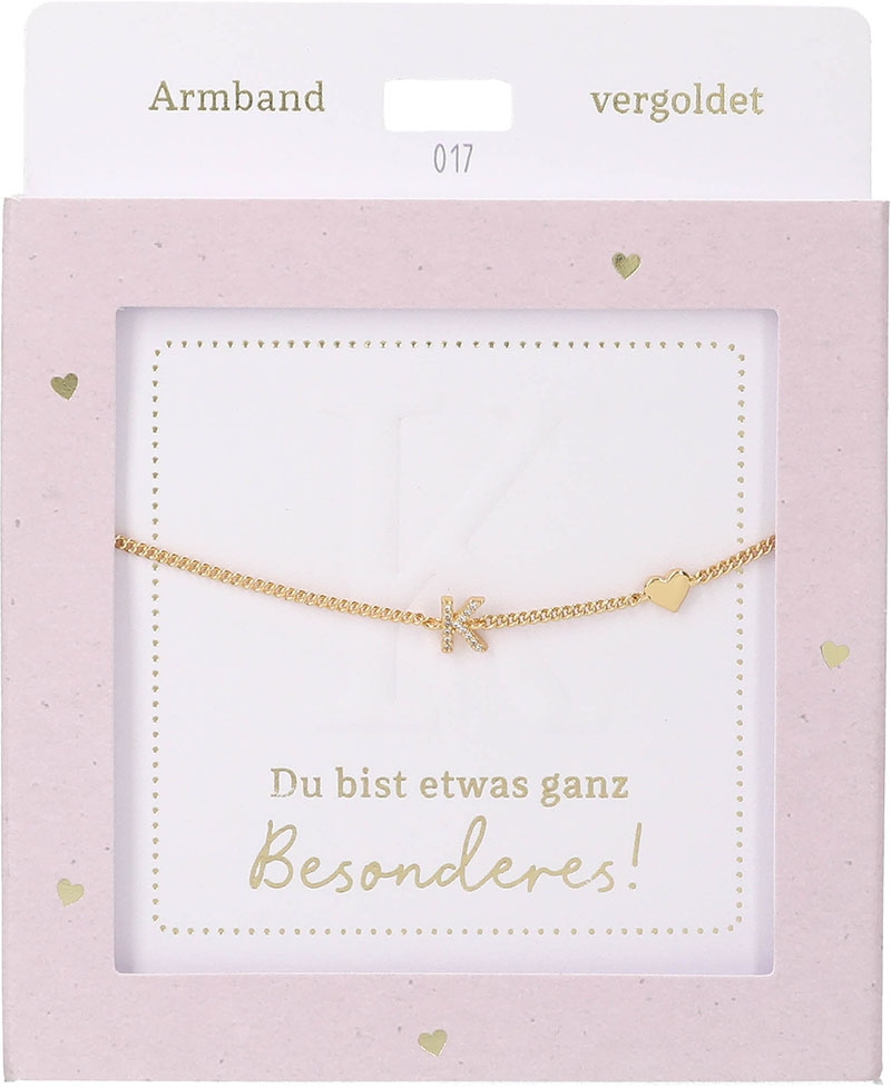 Damen Edelstahl Armband mit Herz-Anhänger, Silberfarbend oder Goldfarbend, 15-20cm Verstellbar-K Gold