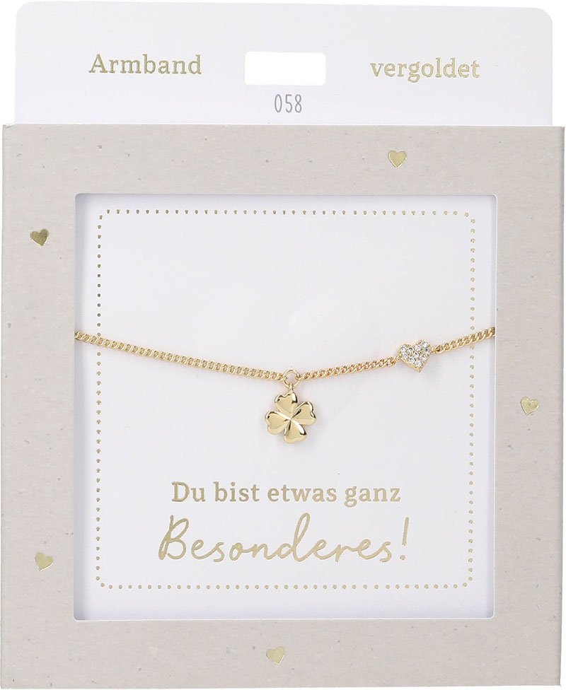 Damen Edelstahl Armband mit Herz-Anhänger, Silberfarbend oder Goldfarbend, 15-20cm Verstellbar-Kleeblatt Gold