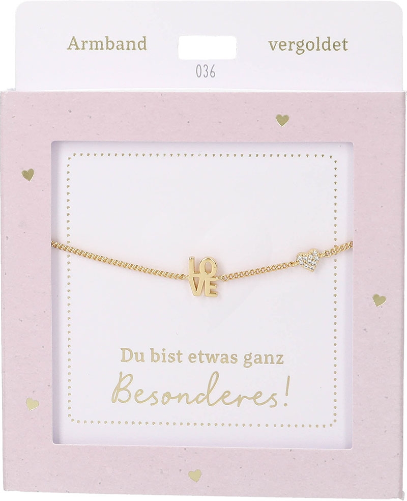 Damen Edelstahl Armband mit Herz-Anhänger, Silberfarbend oder Goldfarbend, 15-20cm Verstellbar-LOVE Gold
