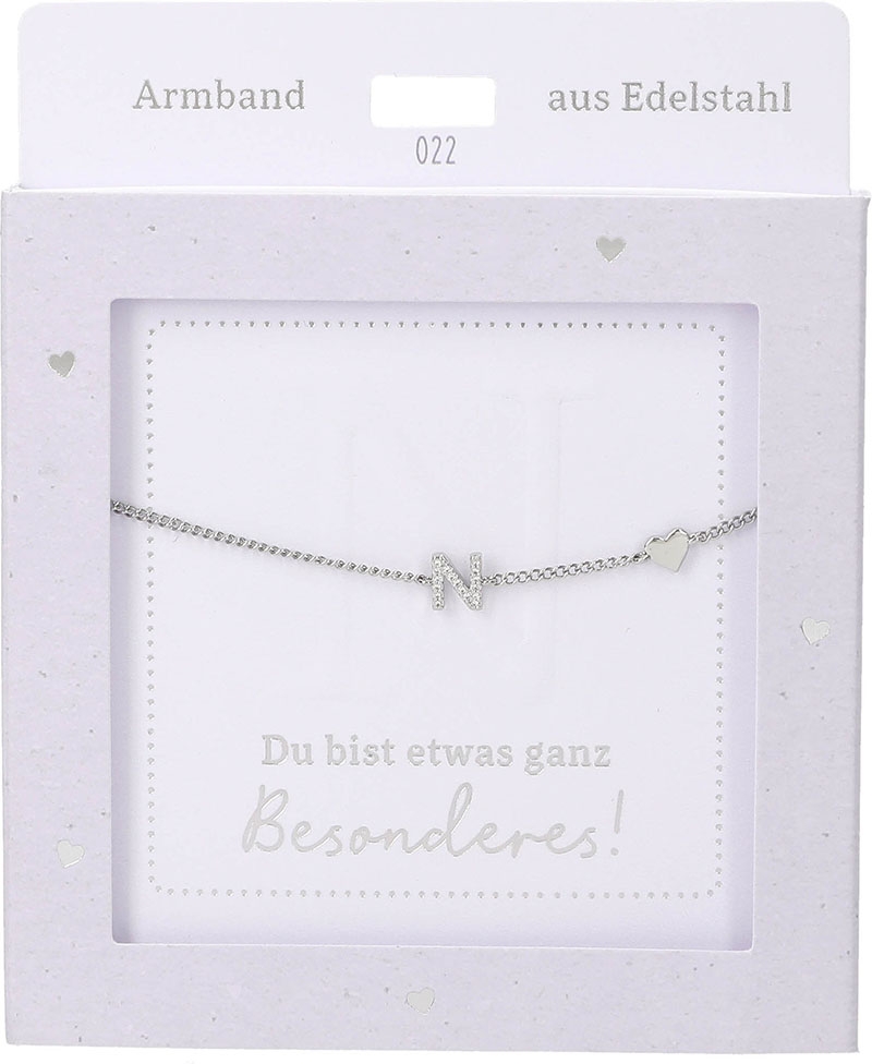 Damen Edelstahl Armband mit Herz-Anhänger, Silberfarbend oder Goldfarbend, 15-20cm Verstellbar-N Silber