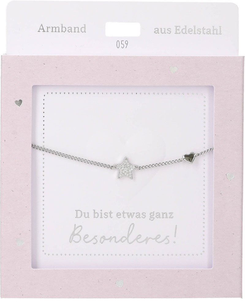 Damen Edelstahl Armband mit Herz-Anhänger, Silberfarbend oder Goldfarbend, 15-20cm Verstellbar-Stern Silber