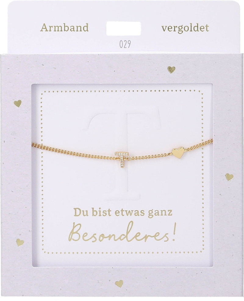 Damen Edelstahl Armband mit Herz-Anhänger, Silberfarbend oder Goldfarbend, 15-20cm Verstellbar-T Gold