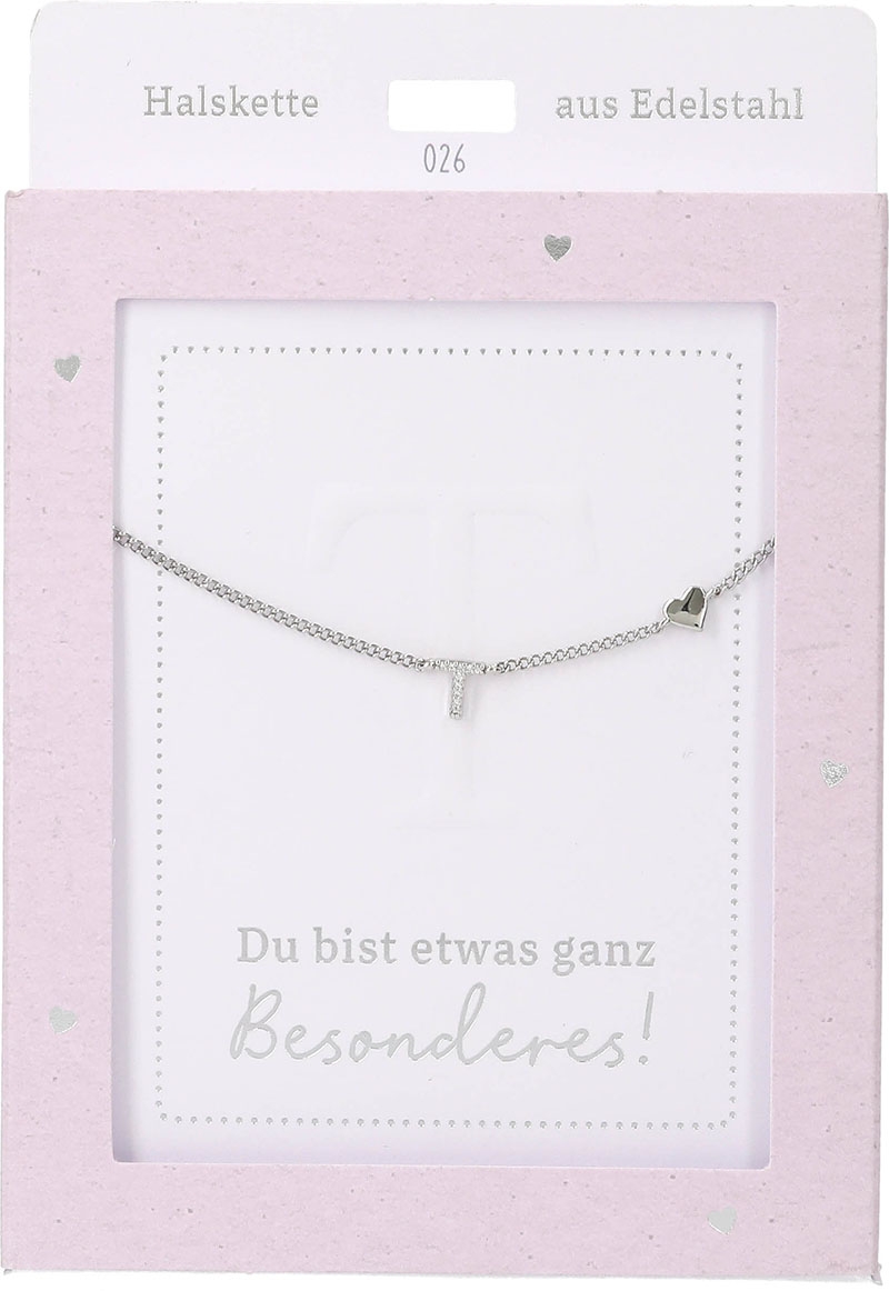 Depesche Damen Halskette mit Herz-Anhänger, Silberfarben o.Goldfarben,Edelstahl,42-47cm Verstellbar-Halskette Nr.26 - T silber