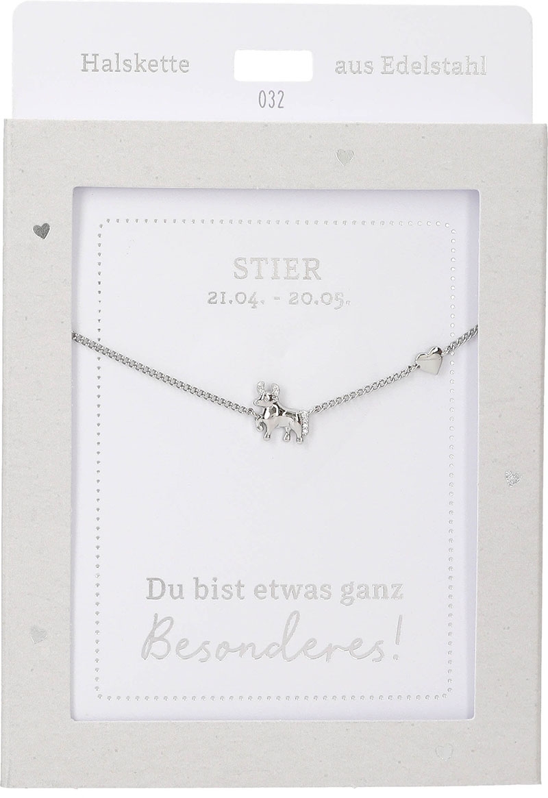 Depesche Damen Halskette mit Herz-Anhänger, Silberfarben o.Goldfarben,Edelstahl,42-47cm Verstellbar-Halskette Nr.32 - Stier