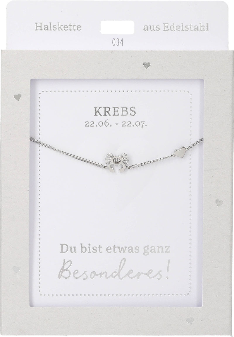 Depesche Damen Halskette mit Herz-Anhänger, Silberfarben o.Goldfarben,Edelstahl,42-47cm Verstellbar-Halskette Nr.34 - Krebs