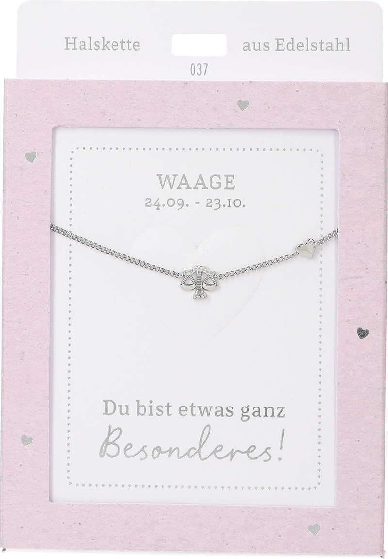 Depesche Damen Halskette mit Herz-Anhänger, Silberfarben o.Goldfarben,Edelstahl,42-47cm Verstellbar-Halskette Nr.37 - Waage