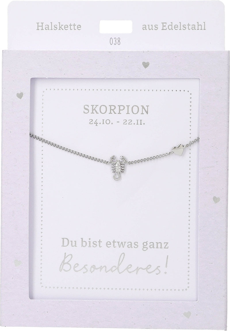 Depesche Damen Halskette mit Herz-Anhänger, Silberfarben o.Goldfarben,Edelstahl,42-47cm Verstellbar-Halskette Nr.38 - Skorpion
