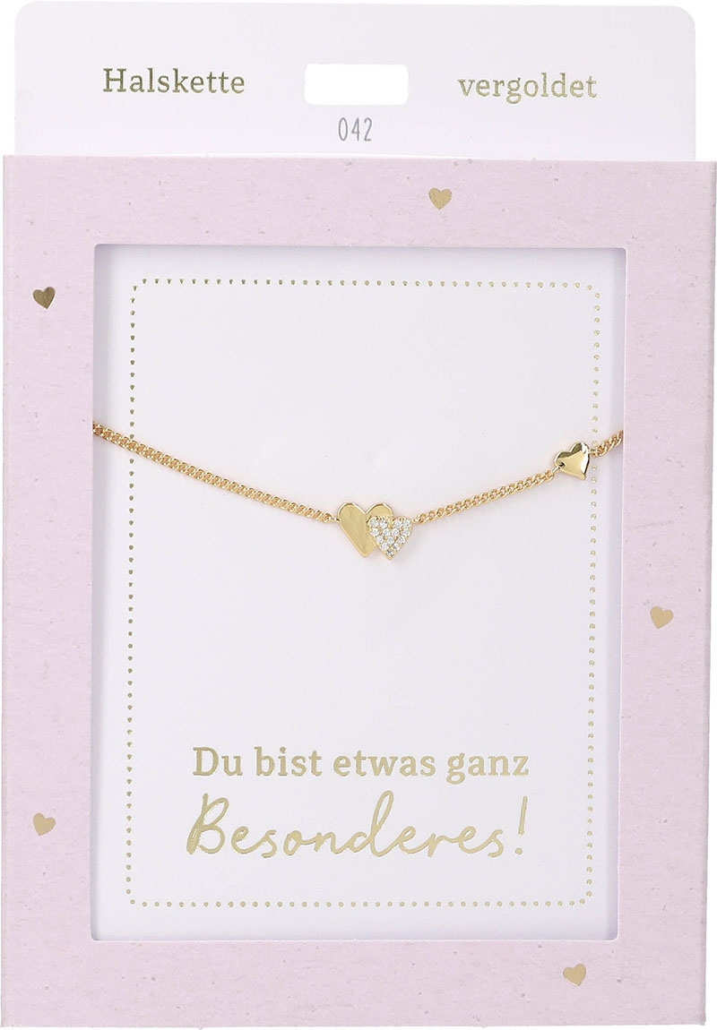 Depesche Damen Halskette mit Herz-Anhänger, Silberfarben o.Goldfarben,Edelstahl,42-47cm Verstellbar-Halskette Nr.42 - 2 Herzen