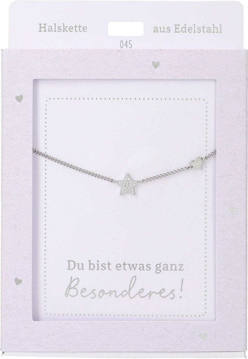 Depesche Damen Halskette mit Herz-Anhänger, Silberfarben o.Goldfarben,Edelstahl,42-47cm Verstellbar-Halskette Nr.45 - Stern silber