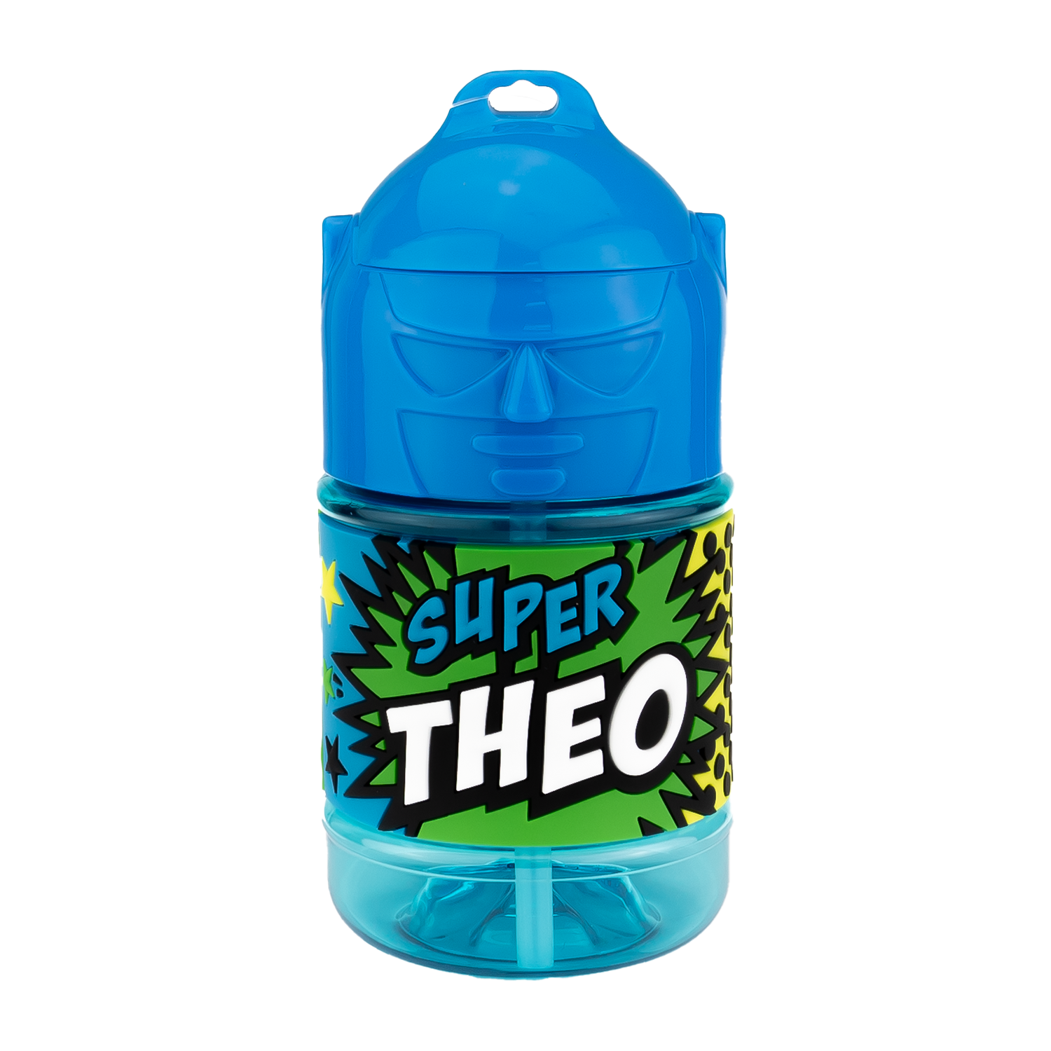 Wasserflasche f. Kinder mit Namen für Schule und Freizeit-BPA frei-Trinkflasche Theo