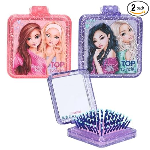 Entdecke die bezaubernden TOPModel Klapphaarbürsten im trendigen Beauty and Me Design! Dieses stylische 2er-Set besticht durch sein glitzerndes, leicht transparentes Gehäuse in den Farben Pink und Lila. Jede Bürste ist mit einem modernen Model-Motiv verziert und bietet praktische Funktionalität: Ein aufklappbarer Spiegel und ein hochwertiges Borsten-Polster machen diese Haarbürsten zum perfekten Begleiter für unterwegs. Das kompakte, quadratische Design passt problemlos in jede Tasche. Die Bürsten sind ideal zum Entwirren und Stylen der Haare geeignet und verleihen deinem Look den letzten Schliff. Mit dem integrierten Spiegel kannst du deine Frisur jederzeit und überall auffrischen. Ein Must-have für alle Mode- und Beauty-Fans, die Wert auf Stil und Funktionalität legen. Das Set von TOPModel vereint praktisches Design mit mädchenhaftem Charme und macht das tägliche Haarstyling zum besonderen Vergnügen.