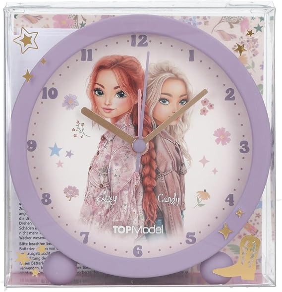 Depesche 13861 TOPModel Cowgirl - Wecker in Lila für Kinder, mit Model-Motiv und Blumen, lautlose Uhr mit Licht-Funktion, inklusive Batterie. TOPModel-Wecker mit Weck- und Lichtfunktion, lilafarbenes Gehäuse mit Kugel-Füßen,Batterie enthalten AA-Batterie (1,5 V). Zeit für TOPModel: Mit diesem Wecker mit süßem Doppel-Modelmotiv macht das Aufstehen Spaß. Das Gehäuse ist lila, der Wecker hat eine Weck- und Lichtfunktion und als Füße kleine Kugeln. Die Zeiger bewegen sich lautlos, eine AA-Batterie (1,5 V) ist enthalten.