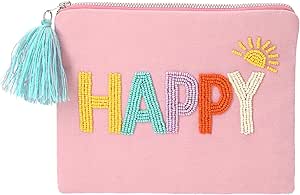 Depesche 13326 TOPModel Juicy - Kosmetiktasche in Pink, mit Perlenstickerei und der Aufschrift "HAPPY", Täschchen mit bunter Quaste