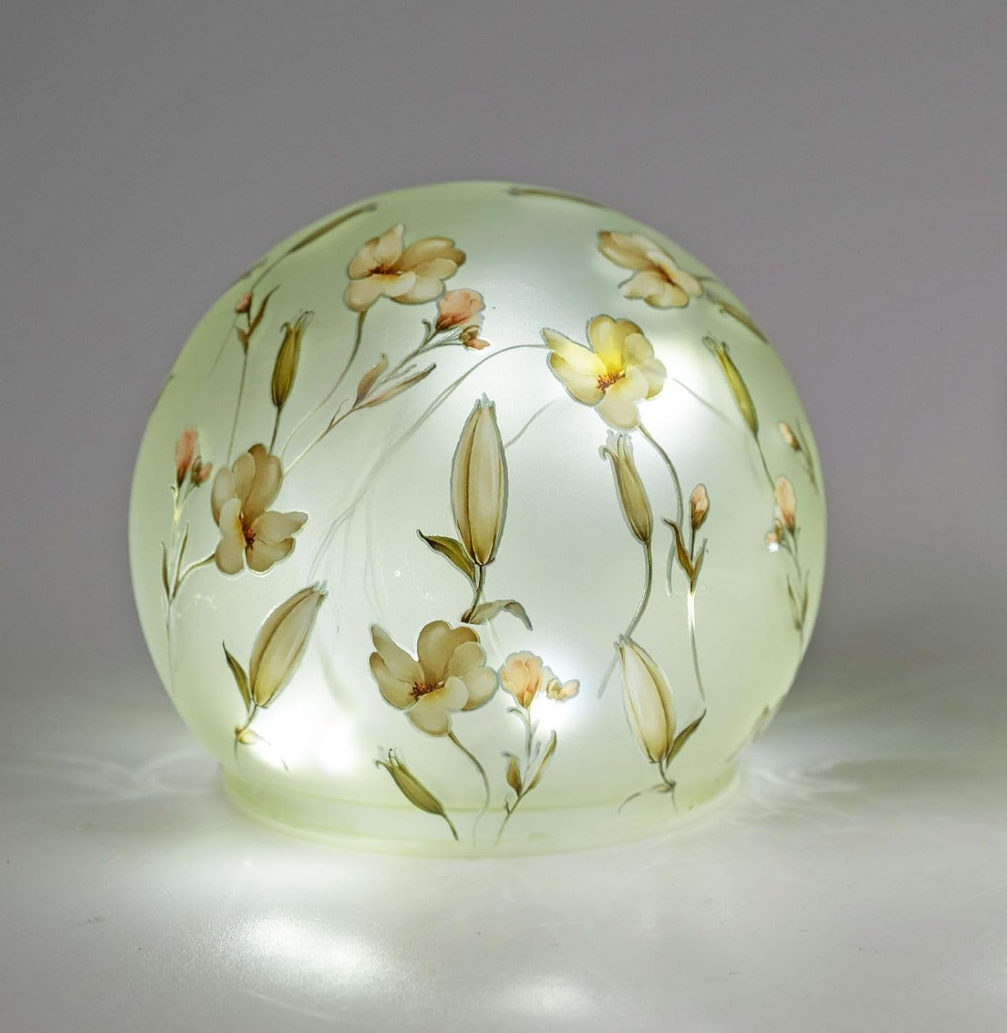 LED Deko Kugel Blütentraum Glas 12 cm Glasleuchte mit Blumen Dekor Timer 6h/18h