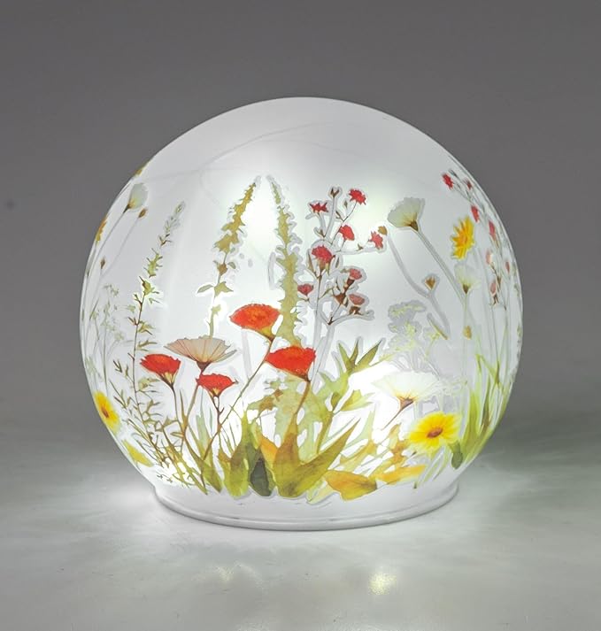 LED Deko Kugel Glas Blumenwiese 12 cm