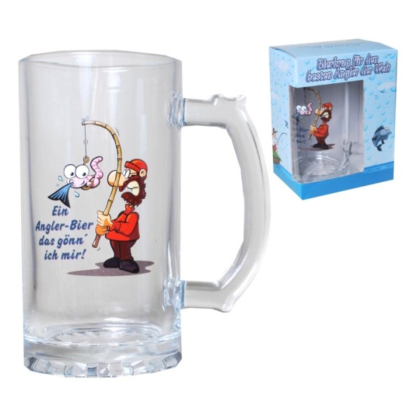 1 Stück Bierglas Bierkrug im Geschenkkarton zum Hobby Angeln- Geschenke für Angler 15x8cm